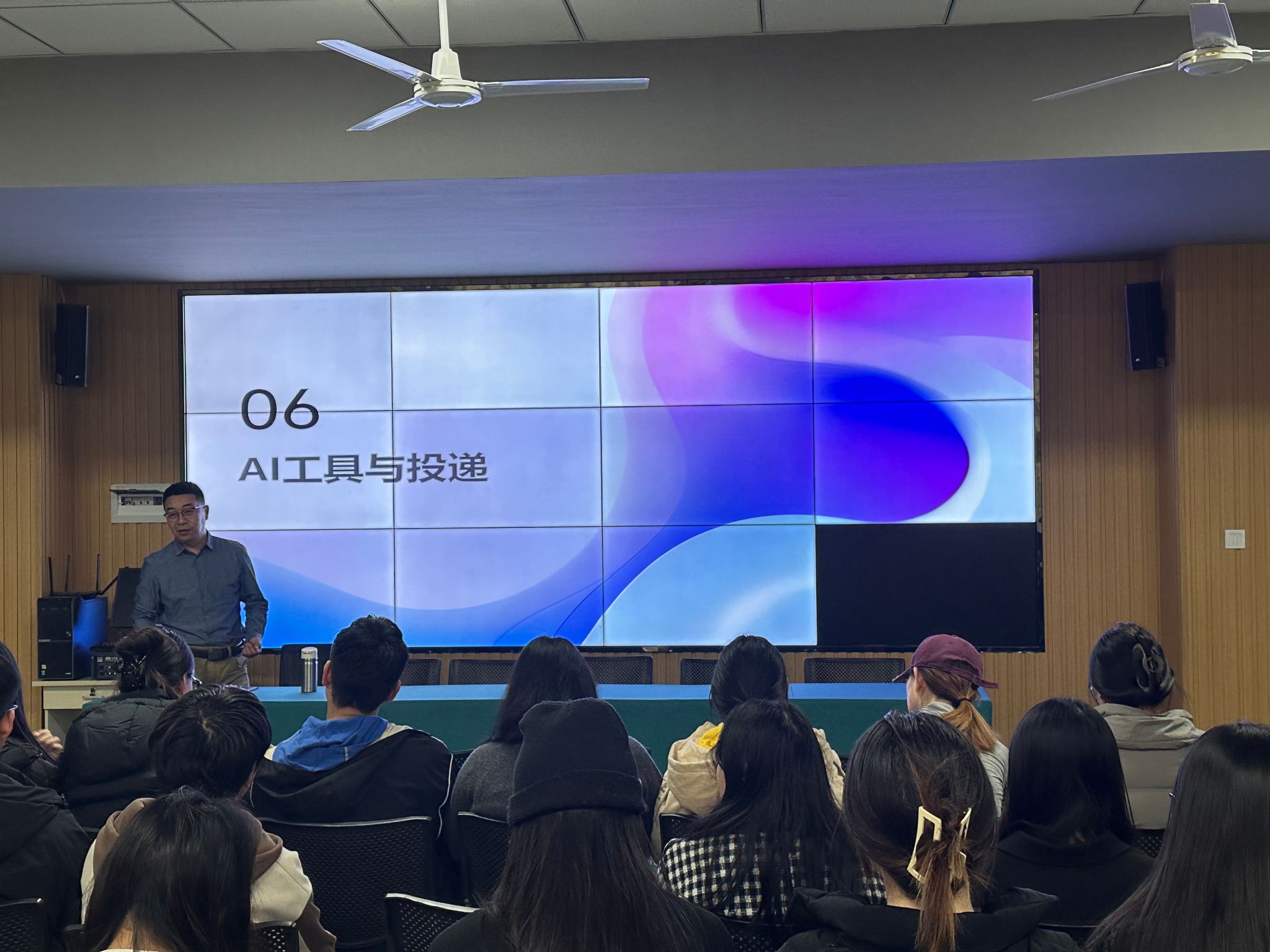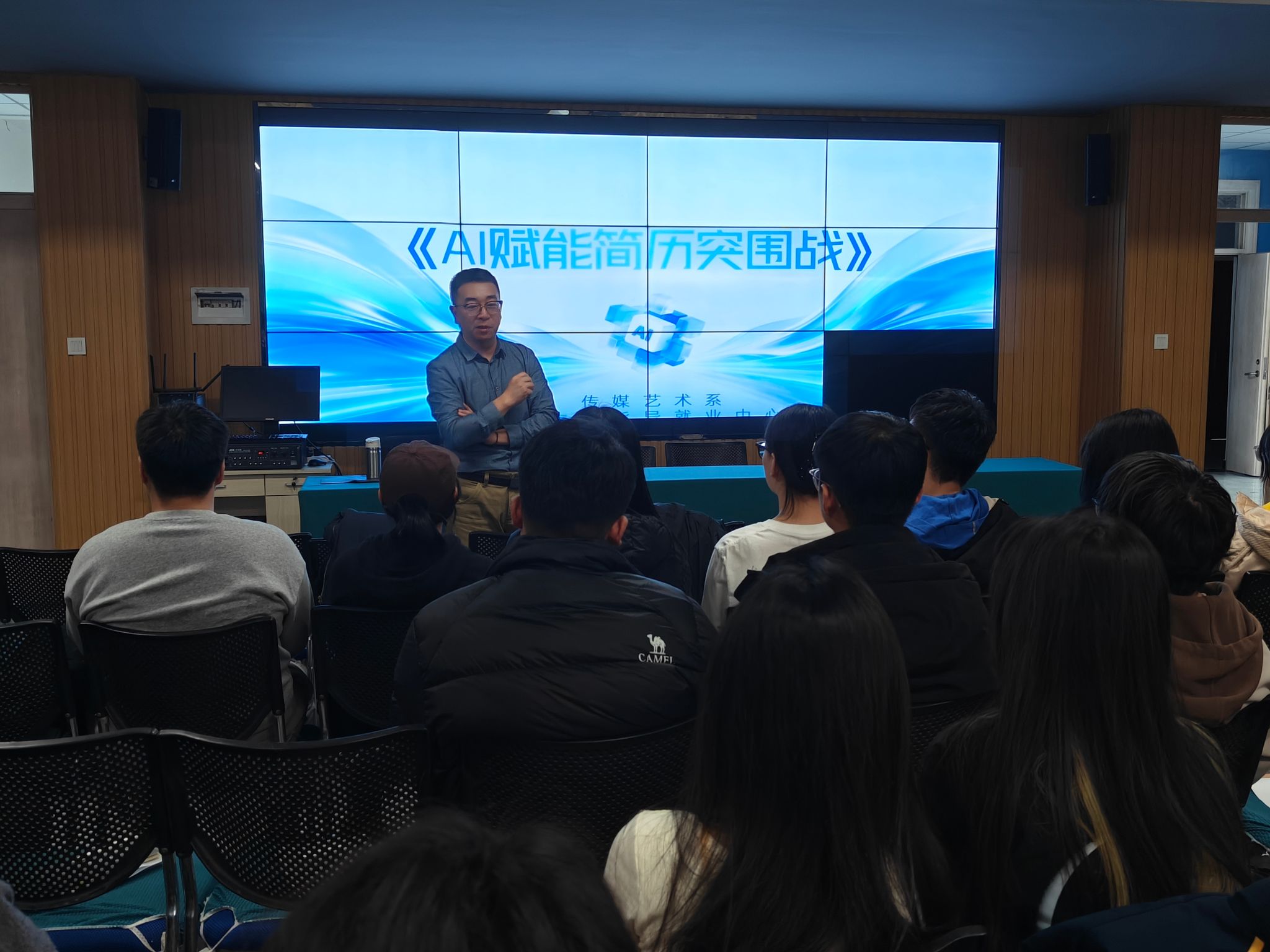 为破解学生简历撰写难题、提升求职竞争力。2025年11月26日下午,传媒艺术系联合学院招生与就业指导中心开展“AI赋能简历突围战”专题培训,特邀请青年就业助力联盟秘书长、中国联通总部认证中级培训师、五百强企业培训总监杨喆宇老师主讲,80余名大三学生参与活动。