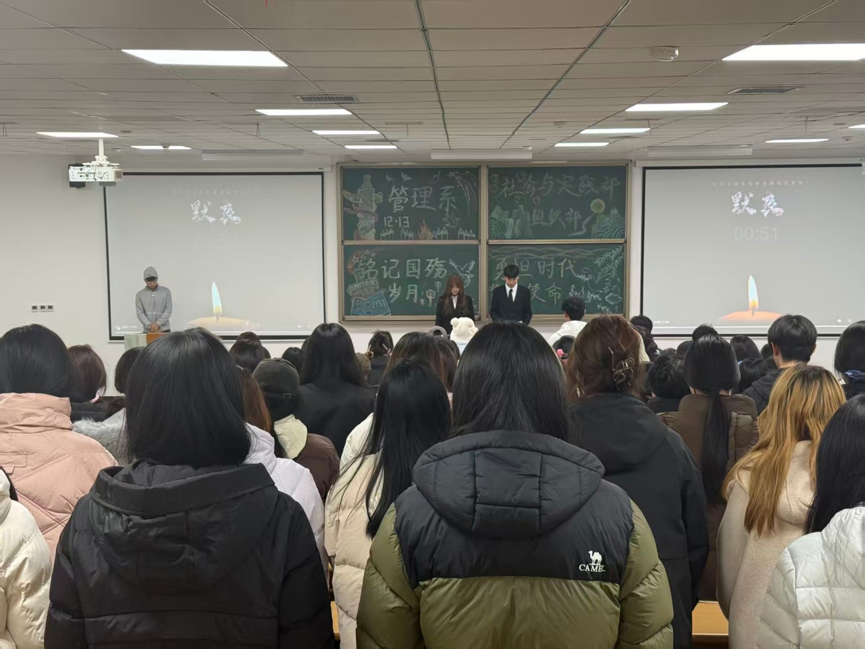 2025为缅怀南京大屠杀遇难同胞、传承爱国精神,管理系于12月9日18:00在知新2号楼310教室举办“铭记国殇岁月,勇担时代使命”主题活动。活动现场设置了主题宣讲、历史学习等环节,正式开始后,主持人首先介绍了南京大屠杀死难者国家公祭日的背景意义,带领全场学生肃立默哀1分钟;随后主讲人结合历史史料,讲述了遇难同胞的苦难过往与革命先烈的抗争事迹,同时分享了当代青年以实际行动践行使命的案例,引导学生将爱国情转化为奋进动...