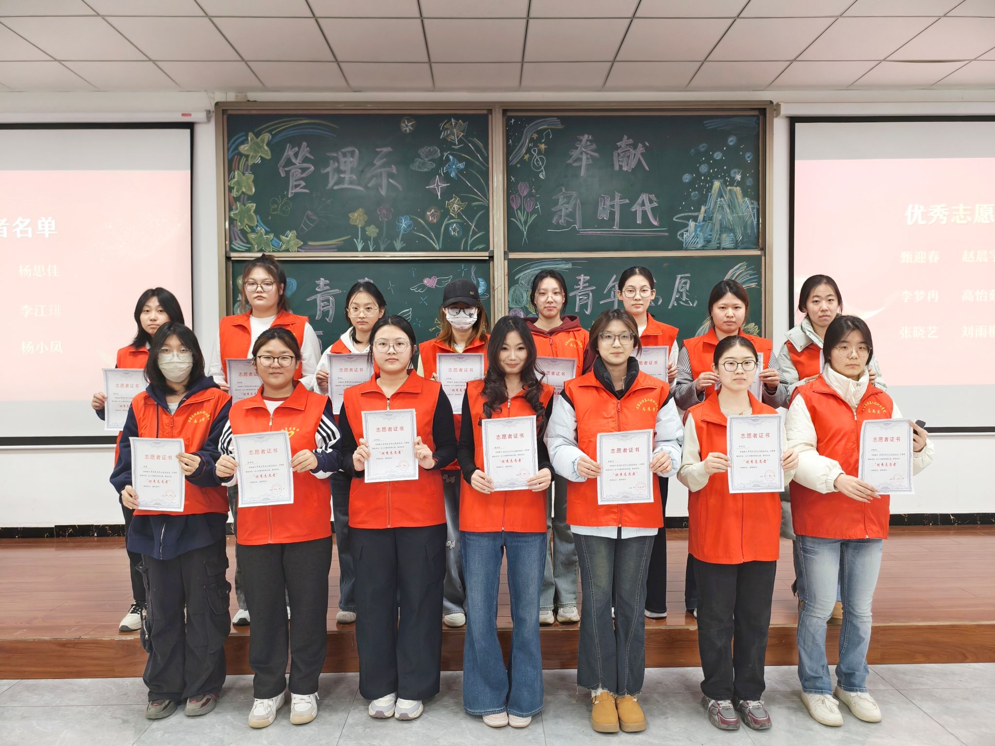 2026为作2025年度志愿服务总结报告,表彰先进典型,进一步激发学生参与志愿服务的热情,管理系于1月6日下午18:00于知新2号楼310教室开展“青春志愿行·奉献新时代”主题活动。活动中,管理系青年志愿者协会负责人作2025年度志愿服务总结报告,全面回顾全年志愿工作开展情况。随后,大会宣读优秀志愿者表彰决定,有15名志愿者荣获“2025年度优秀志愿者”称号。现场两名会长为优秀志愿者颁发荣誉证书,优秀志愿者代表上台分享志愿感悟...