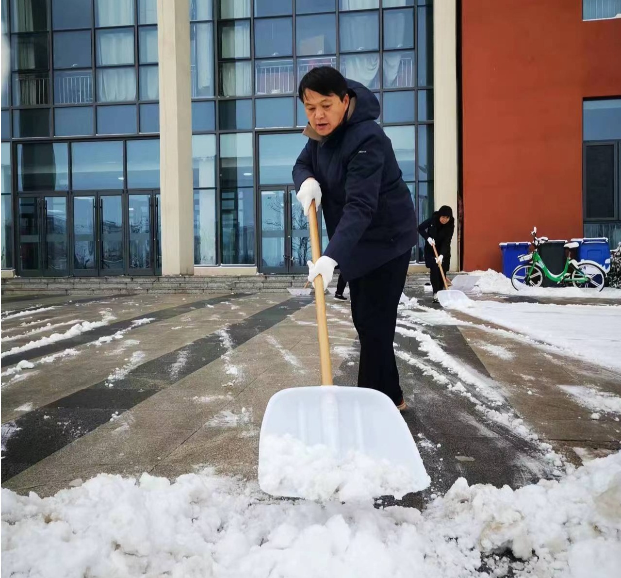 2023年的初雪,如约而至,雪花犹如鹅毛一般纷纷扬扬洒落人间,冰天雪地,美不胜收。美丽的校园也被“装扮”的银装素裹、诗情画意。瑞雪为大家带来喜悦心情,但也给校园安全带来许多隐患,校内存有的积雪,严重影响了师生的出行安全。为尽快扫雪除冰、畅通道路、消除隐患,确保师生的安全和教育教学的正常进行,12月11日,我系教师纷纷带着推雪板、扫把、铁锹等工具,积极踊跃的加入到铲雪除冰队伍中,大家齐心协力,分工合作,各种除雪工具与积雪厚冰的碰撞声响此起彼伏。