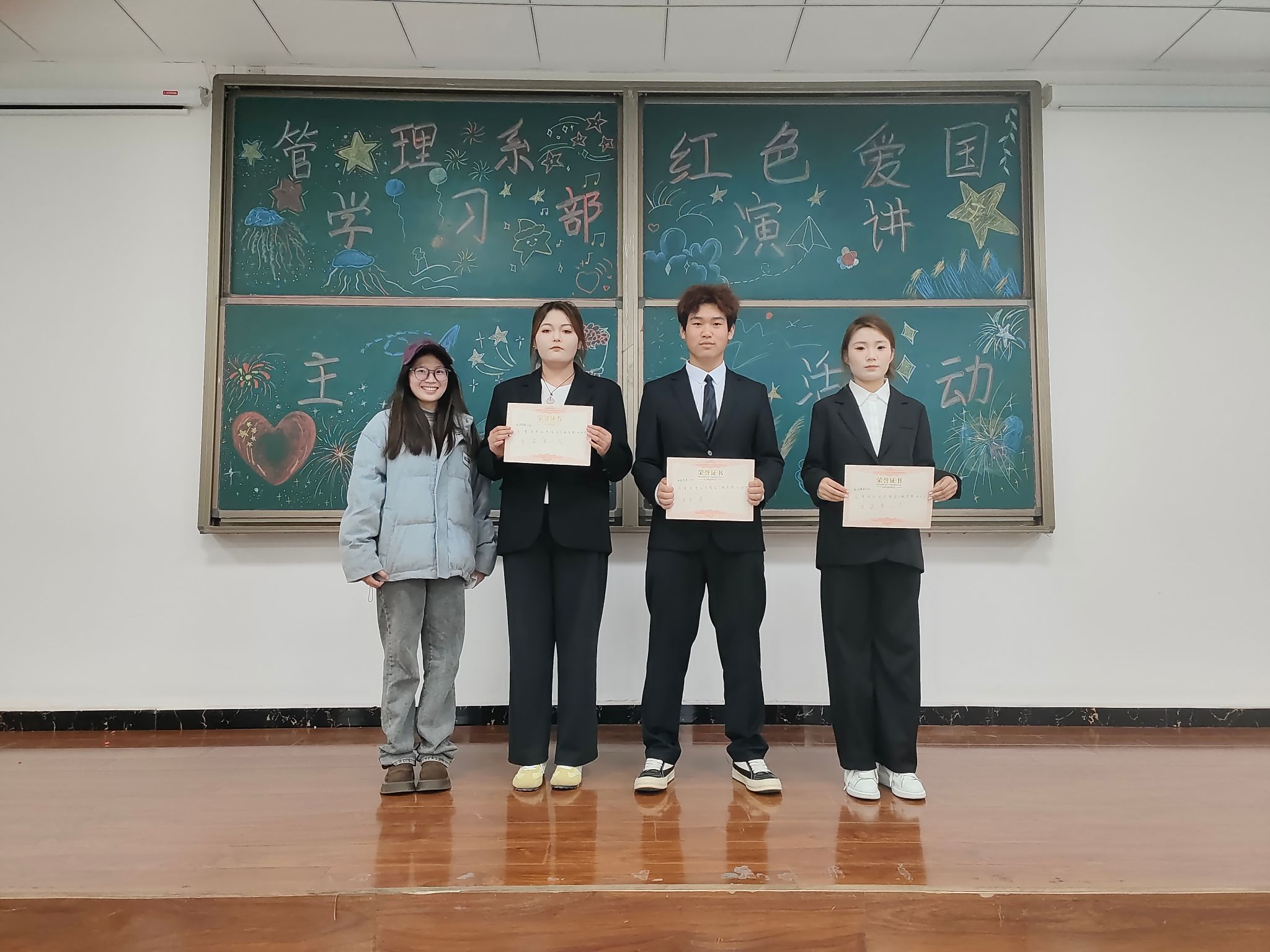 为了厚植青年学生的爱国情怀,以红色精神为纽带串联起历史记忆与时代责任。管理系11月5日下午18:00于知新2号楼310教室开展“红色爱国演讲”主题思想活动。