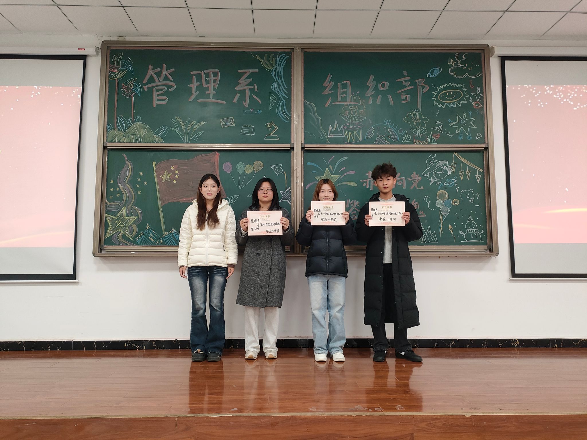 在红色知识问答环节,参赛选手们沉着冷静、反应迅速,对答如流,展现出扎实的红色知识功底和强烈的爱国热情。同学们在欢声笑语中拉近了心与心的距离,增进了彼此的交流与信任,选手更在一次次作答中,深刻感悟到红色精神所蕴含的强大凝聚力。最终由旅游管理三班取得第一名,行政管理班取得第二名,旅游管理四班取得第三名。