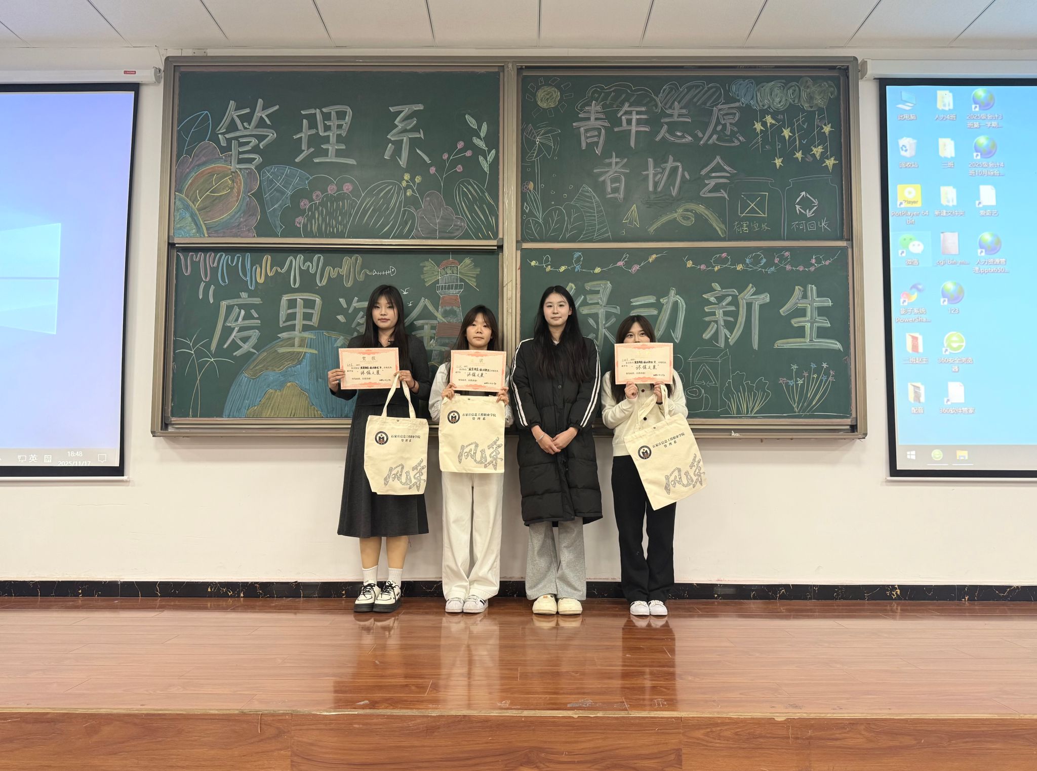 为了强化学生环保意识与创新思维,管理系于11月17日下午18:00于知新2号楼310教室开展“废里淘金,绿动新生”主题思想活动。