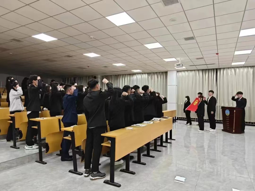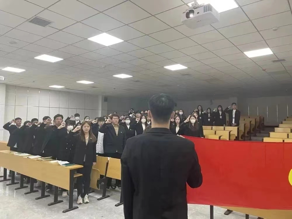 开班仪式在庄严的国歌声中拉开帷幕。管理系团总支副书记赵怡哲为学生们介绍“青年马克思主义者培养工程”的含义,并解释说明“青马工程”是“大思政”格局下思想引领的主要阵地以及中心思想。管理系团总支副书记郭煊屿发言并强调希望学员们坚定理想信念,打牢理论根基并在最后给学员们讲解了“青马班”的上课要求及注意事项。仪式最后由郭煊屿领誓,学员们高举右臂,紧握右拳,郑重宣誓,铮铮誓言表达了青马学员争做时代先锋,为实现中华民族伟大复兴中国梦奋勇前进的信心。