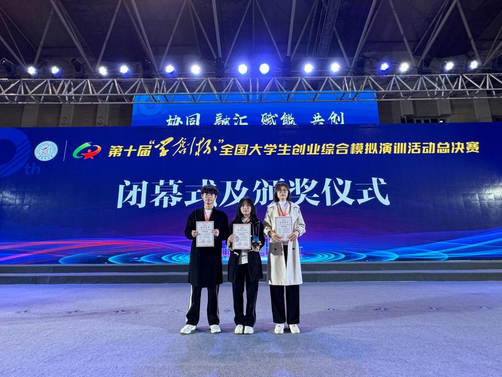 10月29日,第十届“学创杯”全国大学生创业综合模拟演训活动(创业综合模拟赛项)总决赛在黑龙江大学落下帷幕。创业综合模拟赛项通过校赛、省赛选拔出来自全国的600支队伍参赛,通过半决赛决出220支队伍进入线下总决赛,我院经济贸易系学生张立杨、沈枫楠、朱思逸组成的“信工一队”在总决赛现场经过六个小时激烈角逐,以优异的成绩荣获特等奖,经济贸易系两名教师荣获“最佳指导教师”称号。大赛分为“创业综合模拟赛项”和“创业营销赛项”,我院在此前举行的“创业营销赛项”中荣获国赛特等奖,成为全国同时获得两项特等奖的五所院校之一。