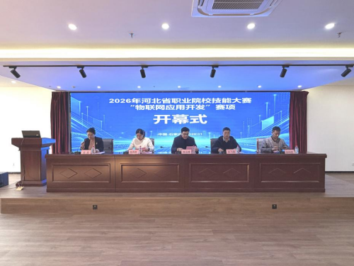 1月6日至7日,由河北省教育厅主办的2026年河北省职业院校技能大赛“物联网应用开发”赛项在我院成功举办,吸引了来自全省20所高职院校36支代表队共72名学生同台竞技。学院副院长陈玉峰、河北省新一代信息技术职业教育集团代表高秀艳主任及相关人员出席大赛开幕式。