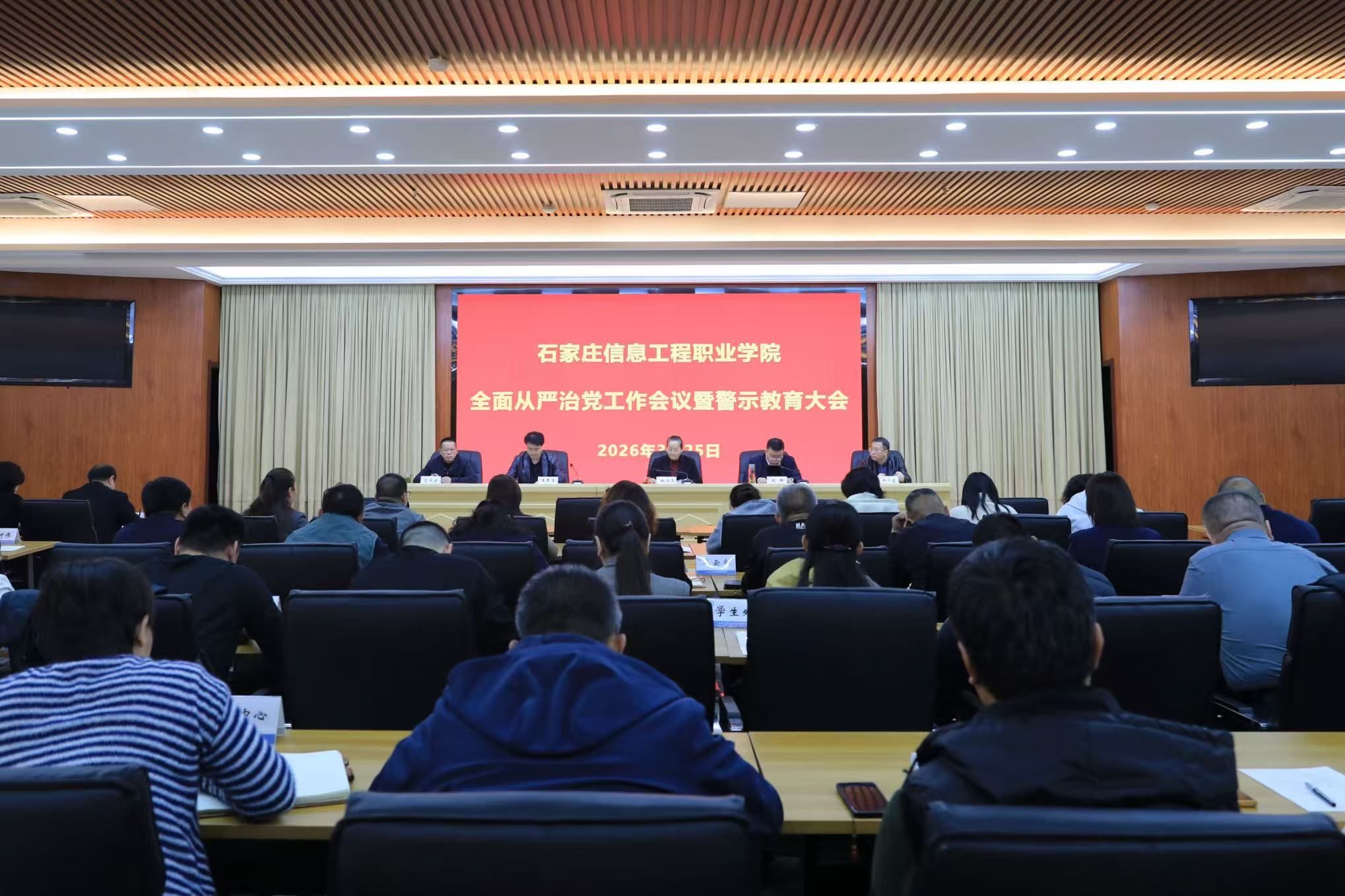 3月25日上午,学院召开2026年全面从严治党工作会议暨警示教育大会,旨在深入贯彻二十届中央纪委五次全会精神,总结2025年学院党风廉政建设和反腐败工作,部署2026年重点任务,为学院实现“十五五”高质量发展提供坚强保障。党委书记赵立芬主持会议并讲话,党委委员、纪委书记赵辉作工作报告,学院领导班子成员出席会议。