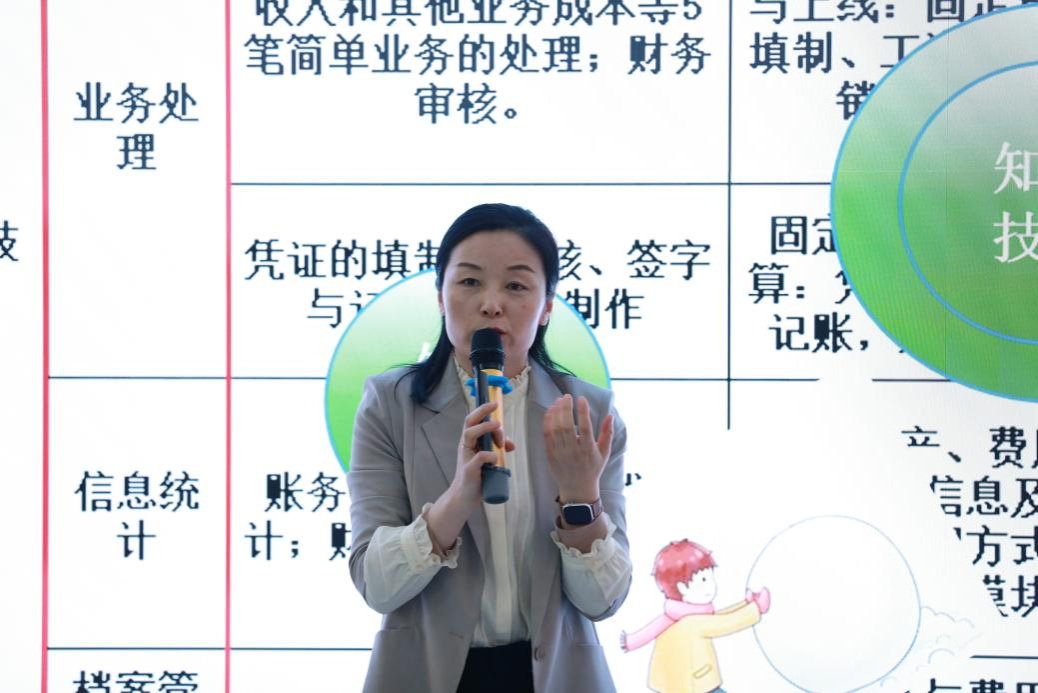 会计系主任姜明霞以“数智赋能、文化铸魂、产教共生”为题,分享了会计系在数智化专业建设中的核心实践举措、产教协同育人落地经验及人才培养成效与思考,展现了会计系在专业改革中的探索与成果。