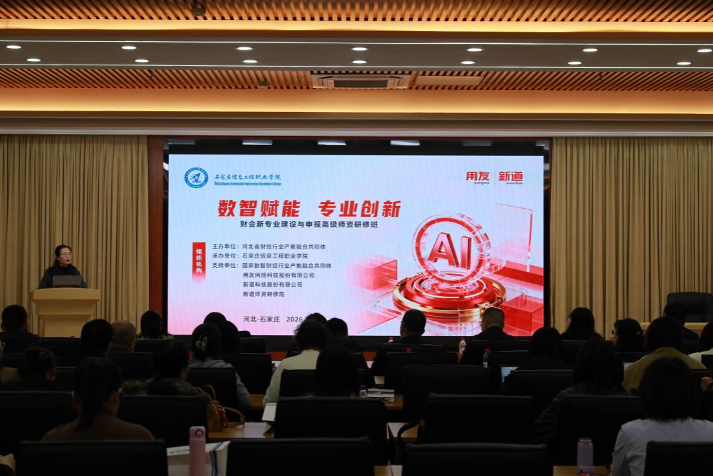 2026年3月28日,我院成功举办“数智赋能 专业创新——财会新专业建设与申报高级师资研修班”。本次研修班由河北省财经行业产教融合共同体主办,我院会计系牵头承办,国家数智财经行业产教融合共同体、用友网络科技股份有限公司、新道科技股份有限公司联合支持。来自全国财会教育领域、行业企业及省内30所高职院校的110余名专家、学者及代表齐聚一堂,围绕数智化背景下“智能财务系统应用与运维”新专业的建设价值、关键路径与核心内容展开深入交流与研讨。学院纪委书记赵辉出席。