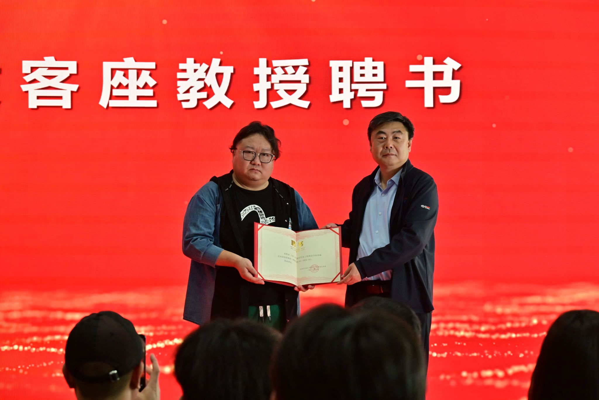 陈玉峰在开班仪式上致辞。他指出,当前AIGC技术正深刻重塑产业发展格局,为行业带来颠覆性变革,也对动漫人才培养提出了新要求、新挑战。此次AIGC动漫制作学徒制班的开设,正是我院深化产教融合、创新人才培养模式的重要举措,也是我院联合行业优质企业,破解人才培养与企业需求脱节难题的有益探索。他强调,全体学徒制班的同学要珍惜学习机会,兼顾艺术创意与技术实操,努力成长为适应行业发展的高素质技术技能人才,同时期待校企双方以此次合作为契机,进一步深化合作、资源共享,共同为河北数字创意产业发展注入新动能。