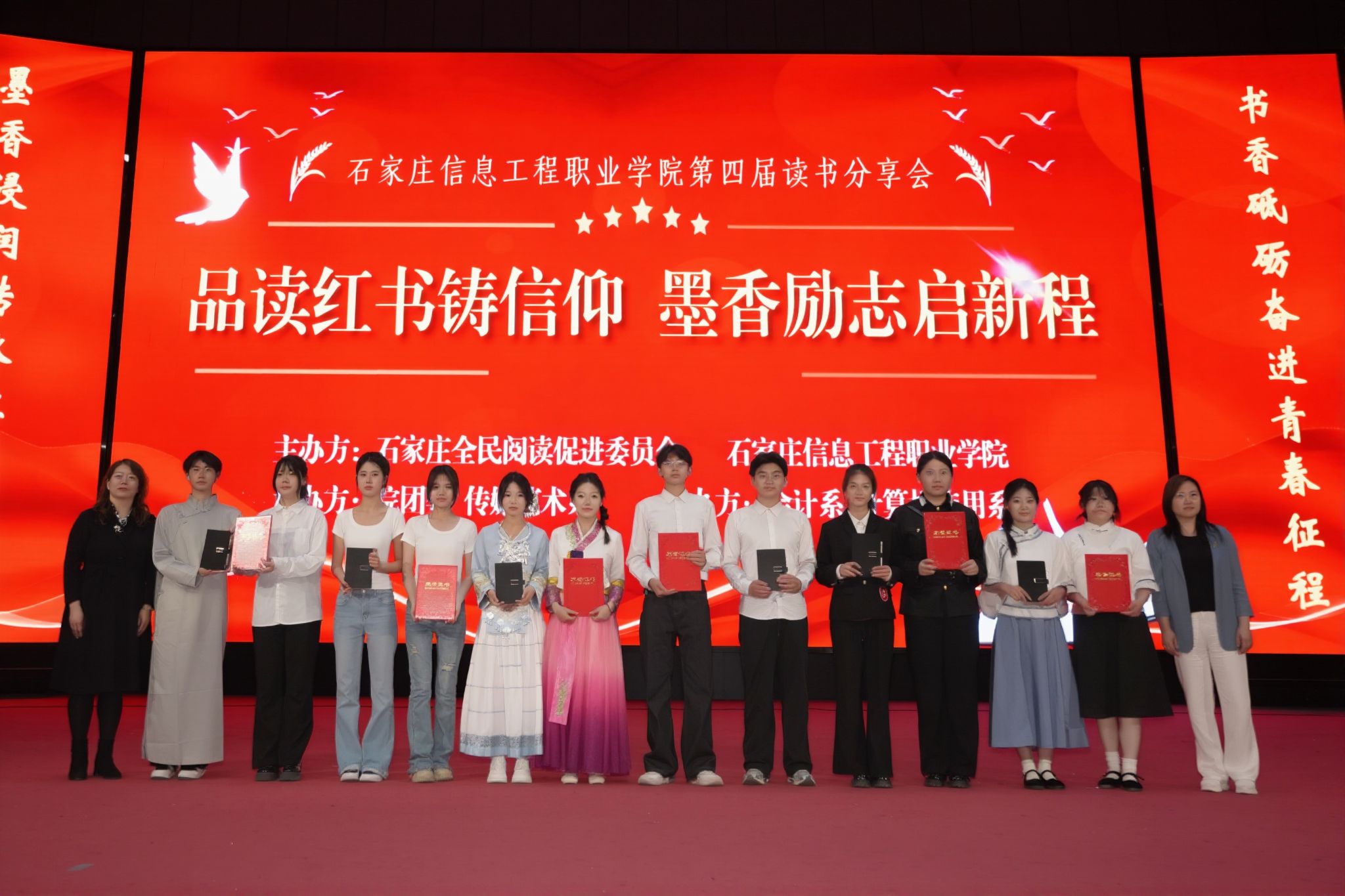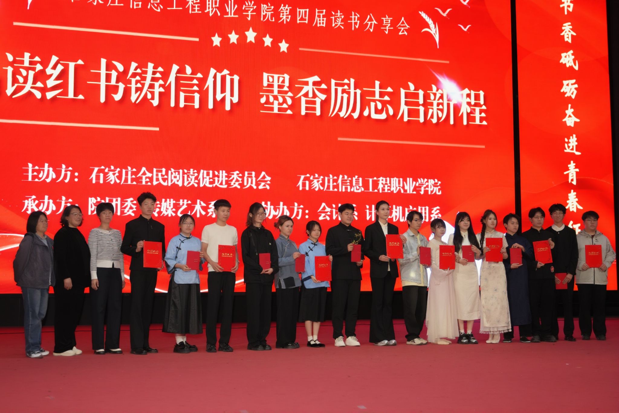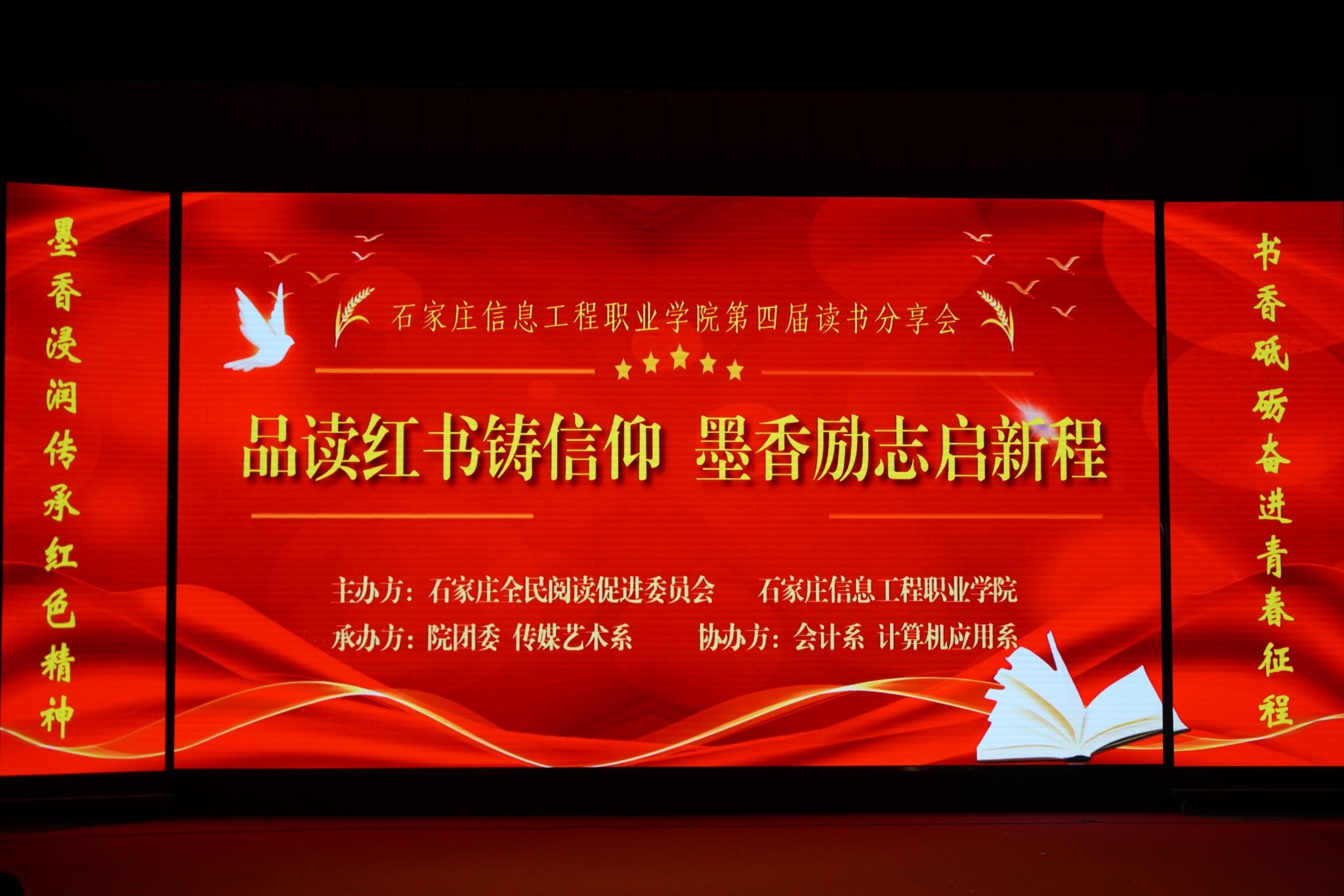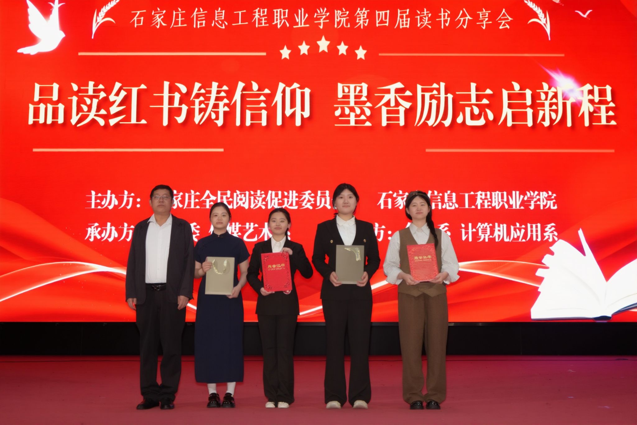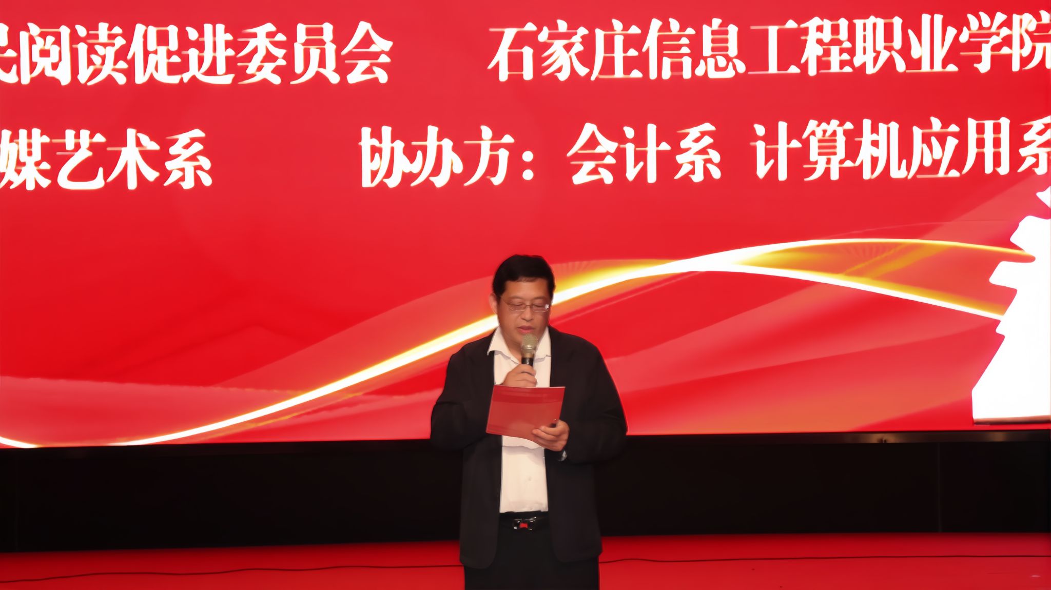 书香浸润校园,阅读点亮青春。4月22日下午,我院第四届读书分享会在昭德礼堂成功举办,活动由学院与石家庄全民阅读促进委员会联合主办,学生处(团委)、传媒艺术系承办,会计系、计算机应用系协办。学生处(团委)负责人出席,桥西区汇通街道仓丰路社区党总支书记、河北省社区服务促进会副会长王雷东应邀担任点评嘉宾。