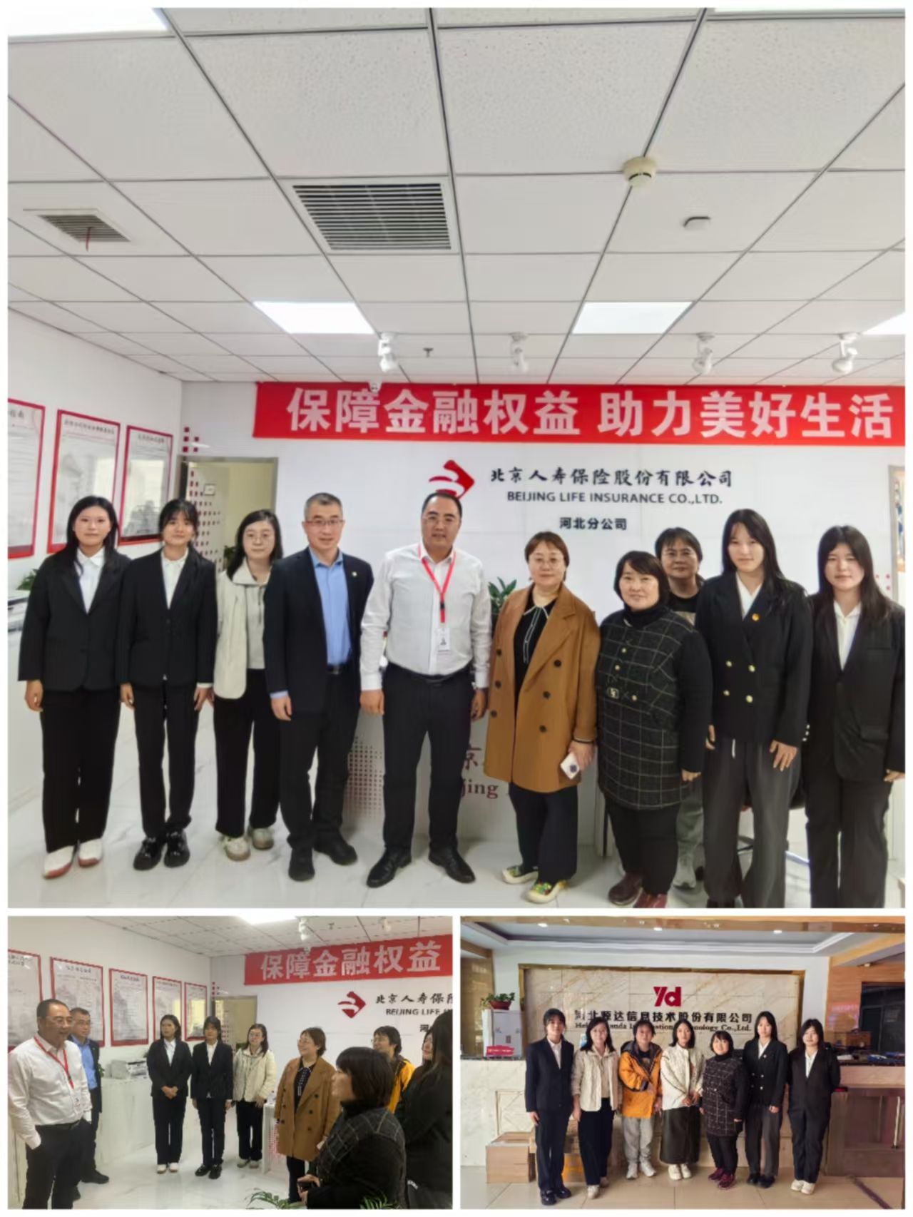 为深化产教融合、校企合作,帮助金融专业学生直观了解行业发展动态、明晰职业发展路径,11月11日,在会计系副主任沈丽的带领下,金融教研室主任及部分专业教师,携金融科技应用、金融服务与管理专业学生代表,先后赴河北源达信息技术股份有限公司、中国人寿保险股份有限公司石家庄市桥西支公司、北京人寿保险股份有限公司河北分公司开展“访企拓岗”专项活动。