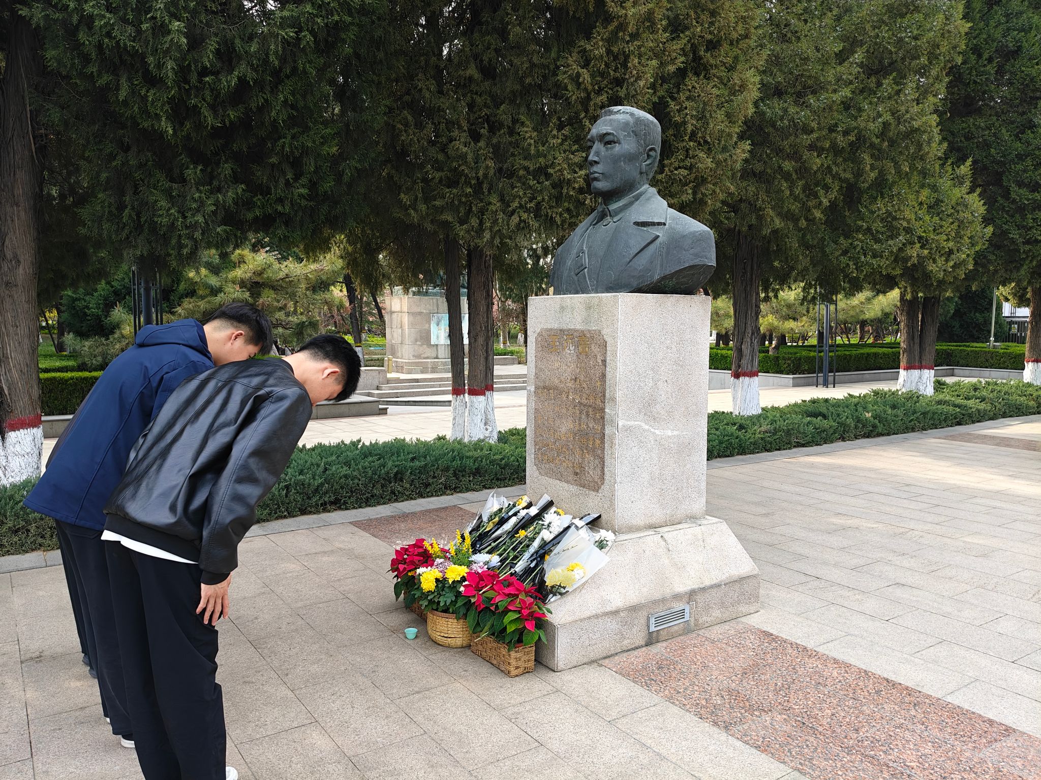 师生们来到烈士纪念铜像前,再次鞠躬默哀,细心整理敬献的花束,表达对革命先烈的无限缅怀。师生们还一同走进华北革命战争纪念馆进行参观学习。馆内珍贵的历史文物、详实的文献资料和生动的场景复原,使全体师生更真切地了解发生在华北大地波澜壮阔的革命斗争历程,更深切学习感悟革命先烈们为民族解放和新中国建立的伟大事业抛头颅、洒热血的英勇事迹。