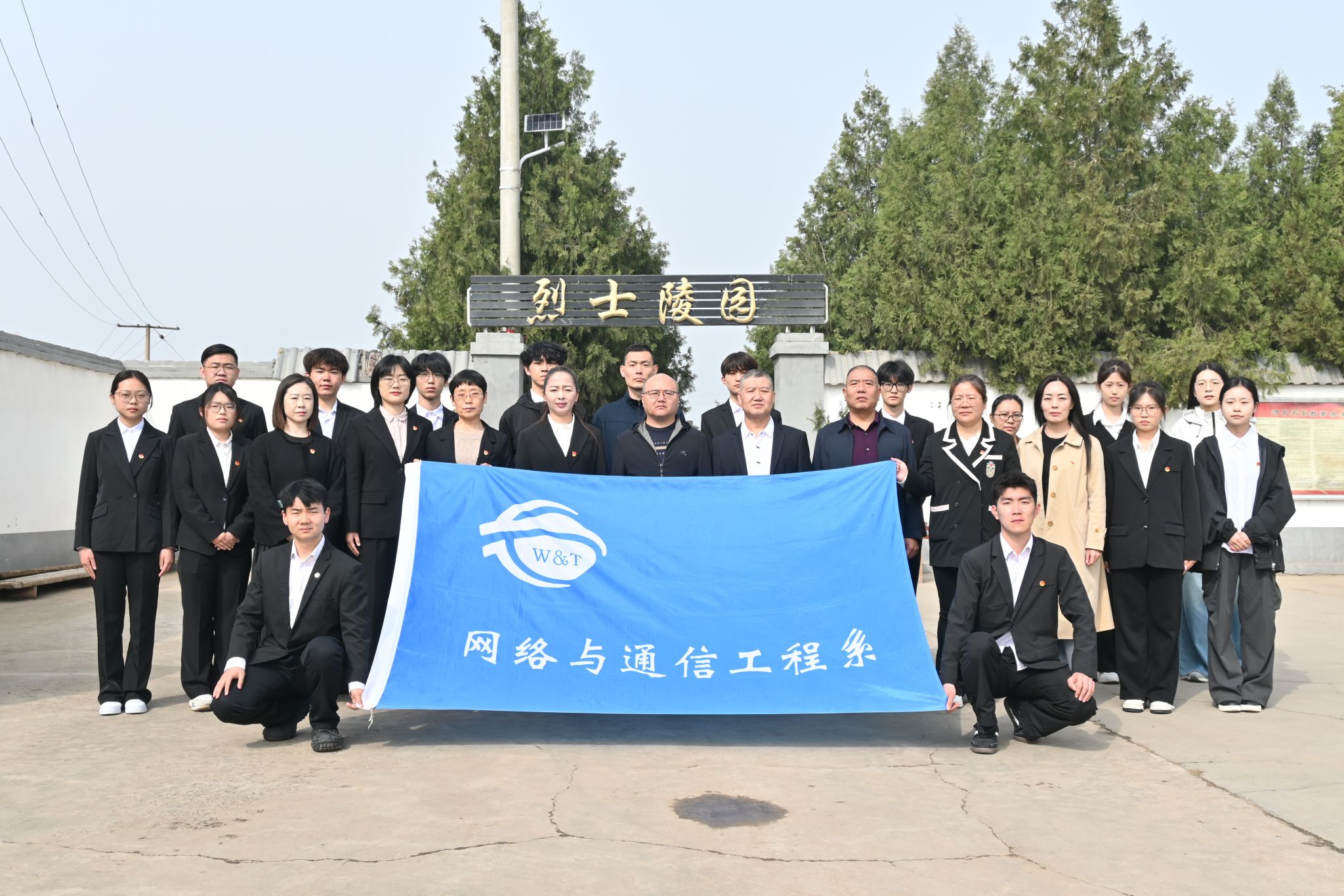 为深入学习贯彻习近平新时代中国特色社会主义思想,传承红色基因、厚植家国情怀,深化校地共建与党建联建育人实效,清明节来临之际,网络与通信工程系党总支师生代表前往藁城区张家庄镇赵庄烈士陵园,联合校地共建与党建联建单位藁城区张家庄镇人民政府、赵庄村委、赵庄小学师生以及石家庄市弘光社会工作服务中心工作人员,共同开展清明祭扫活动。