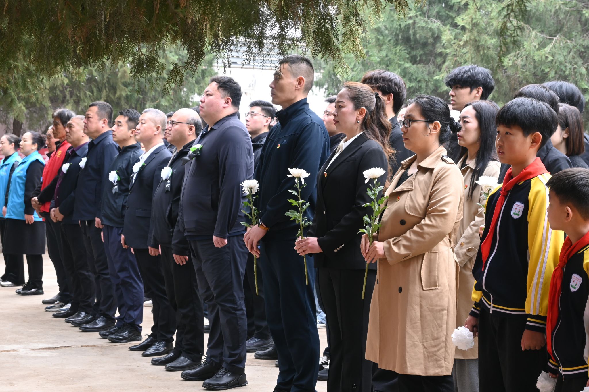 清明寄哀思,英烈照初心。赵庄烈士陵园内松柏苍翠、哀乐低回,革命烈士纪念碑静静矗立,68位为解放石家庄英勇牺牲的革命忠魂长眠于此。全体参与人员着装整洁、列队整齐,神情肃穆地在纪念碑前肃立致敬。仪式现场,全体人员首先向革命先烈默哀一分钟,并行三鞠躬礼。随后齐唱国歌,赵庄小学学生以诗歌朗诵,深情颂扬先烈的革命精神。在《献花曲》的旋律中,大家手持白菊,依次向烈士纪念碑敬献鲜花、缓步瞻仰,以朴素庄重的方式,表达对革命先辈的深切缅怀与崇高敬意。