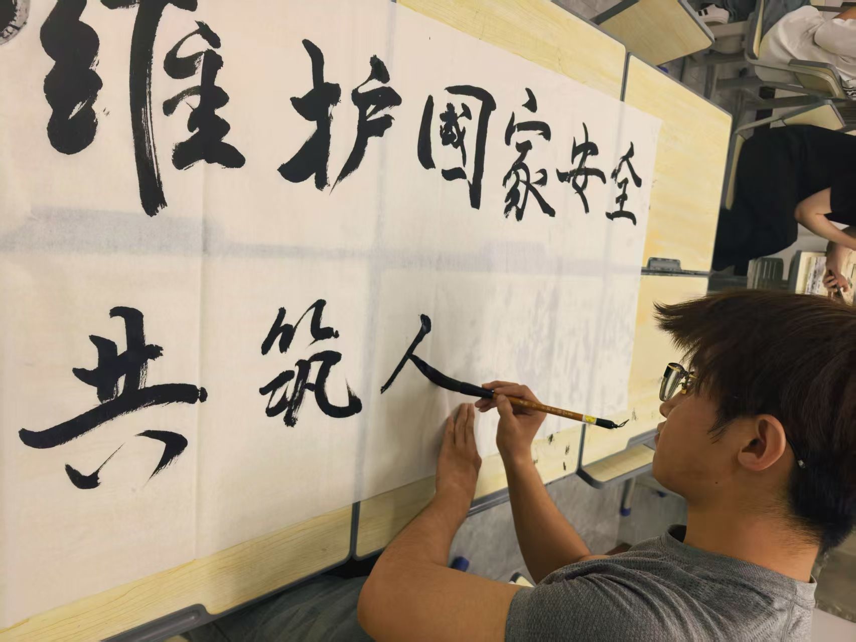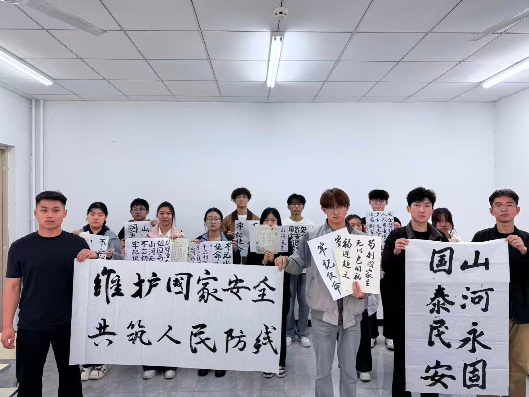 4月16日下午,系青年志愿者协会在知海130教室开展“墨韵书国安,笔绘强国梦”书法活动。现场墨香四溢,同学们执笔挥毫,凝神创作,以笔墨为媒,书写“国家安全,重于泰山”“青年担使命,护航新时代”等铿锵词句。一笔一画间融入家国情怀与安全理念,用传统书法艺术传递捍卫国家主权安全、守护岁月静好的坚定信念。