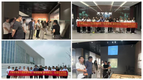 在赵县城市综合馆博物馆,社会实践活动团一行详细了解了赵县历史文化和发展历程;在党史馆,倾听了赵县的红色历史,重温了赵县红色记忆。通过一幅幅珍贵的历史照片,一个个感人的革命故事,切身感受革命先辈艰苦奋斗的革命作风、坚定的革命信念和无畏的革命精神,感受信仰的强大力量,进一步汲取奋进力量、激发拼搏精神、坚定理想信念。随后,举行“经济贸易系大学生社会实践基地”授牌仪式。