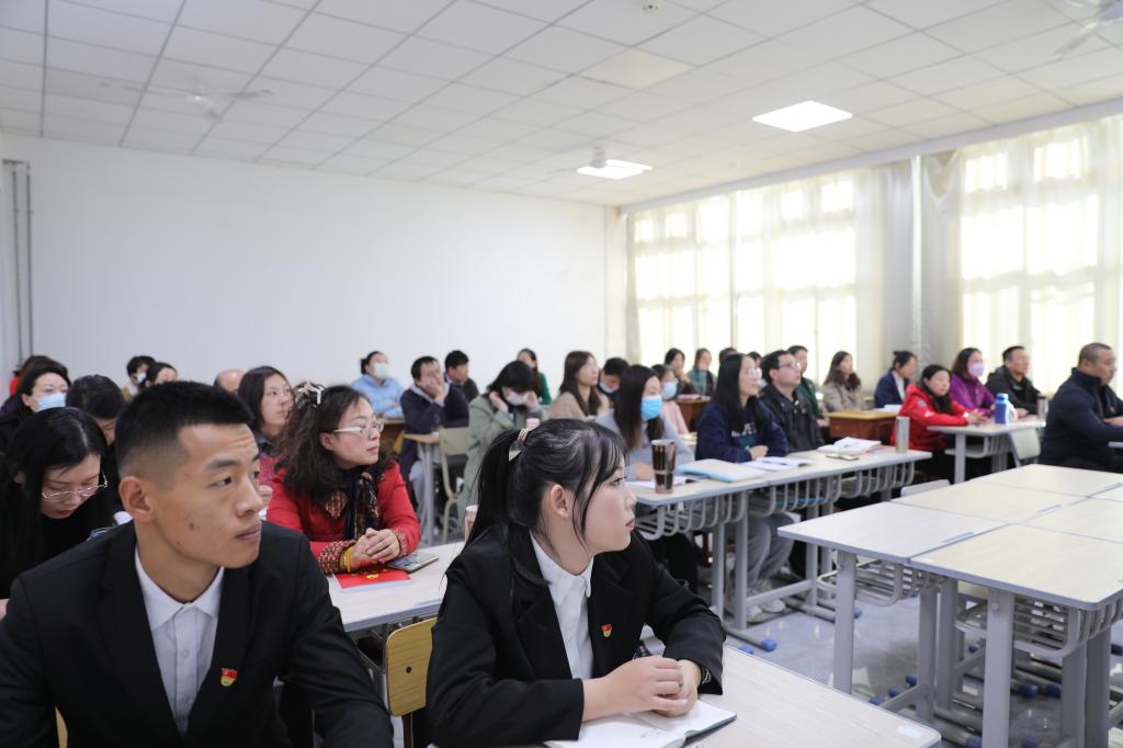 经济贸易系领导班子成员、师生代表参加专题党课。