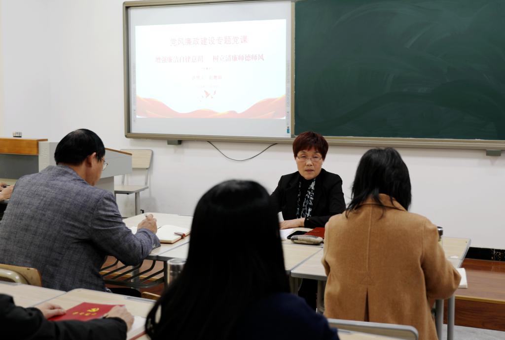 为推动学习贯彻习近平新时代中国特色社会主义思想主题教育走深走实,11月16日下午,学院党委纪委书记赵惠娟以《增强廉洁自律意识 树立清廉师德师风》为题,为经济贸易系师生讲授专题党课。