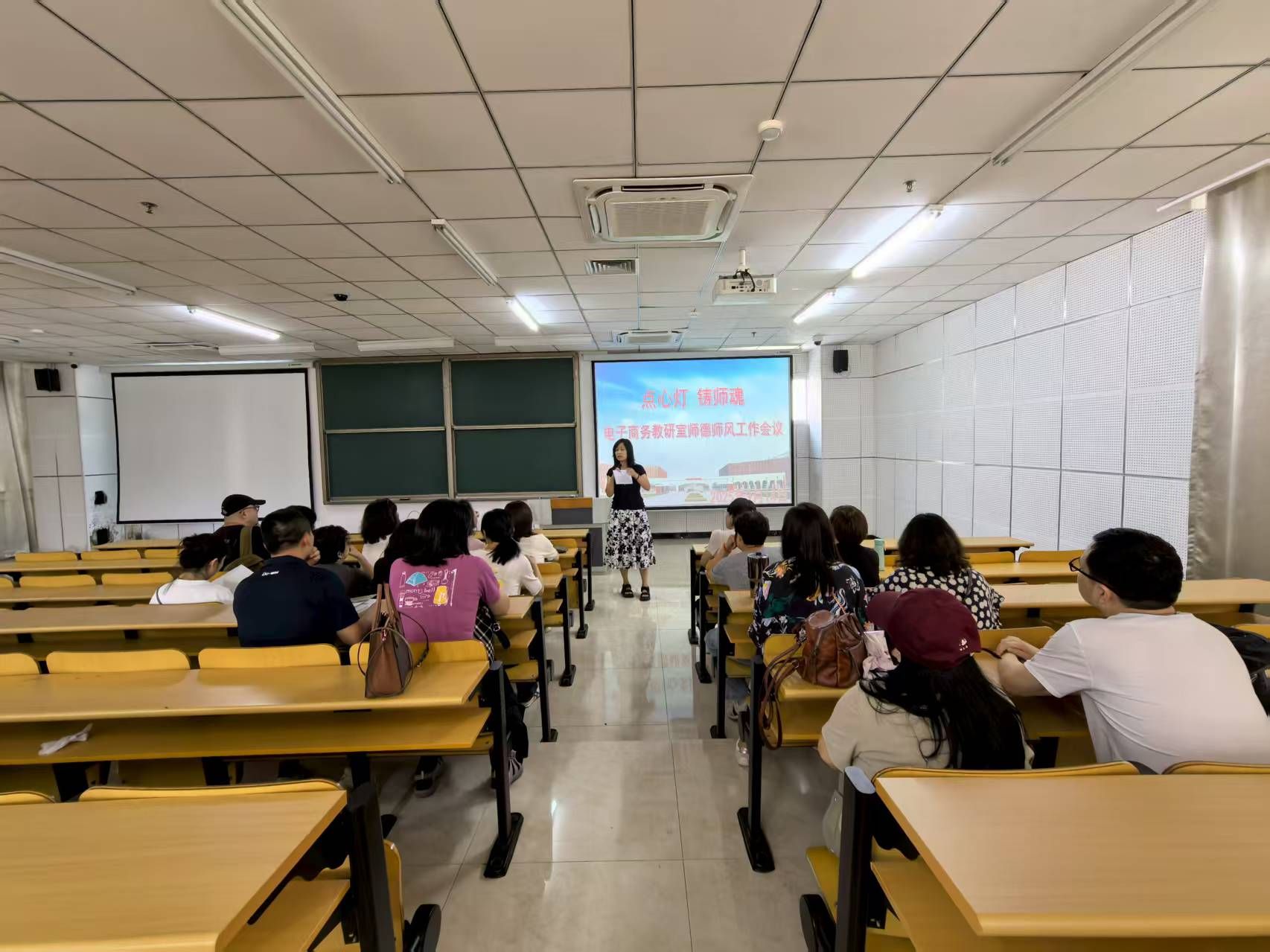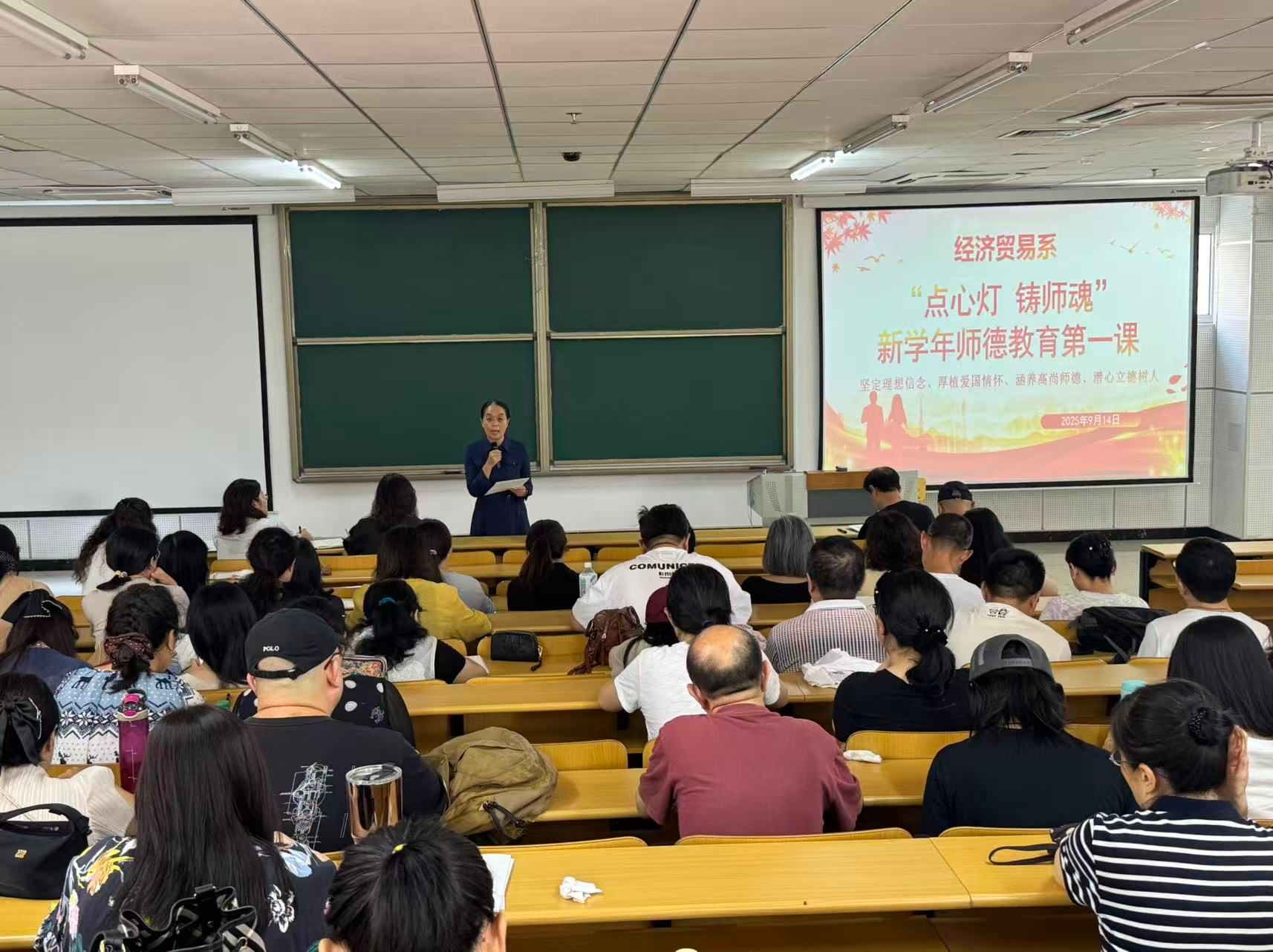 为进一步加强系部教师队伍师德师风建设,明确新时代教师职业规范与育人使命,经济贸易系于2025年9月14日上午在启智楼128阶梯教室组织全系教职工开展了新学年“点心灯,铸师魂”师德教育第一课活动。