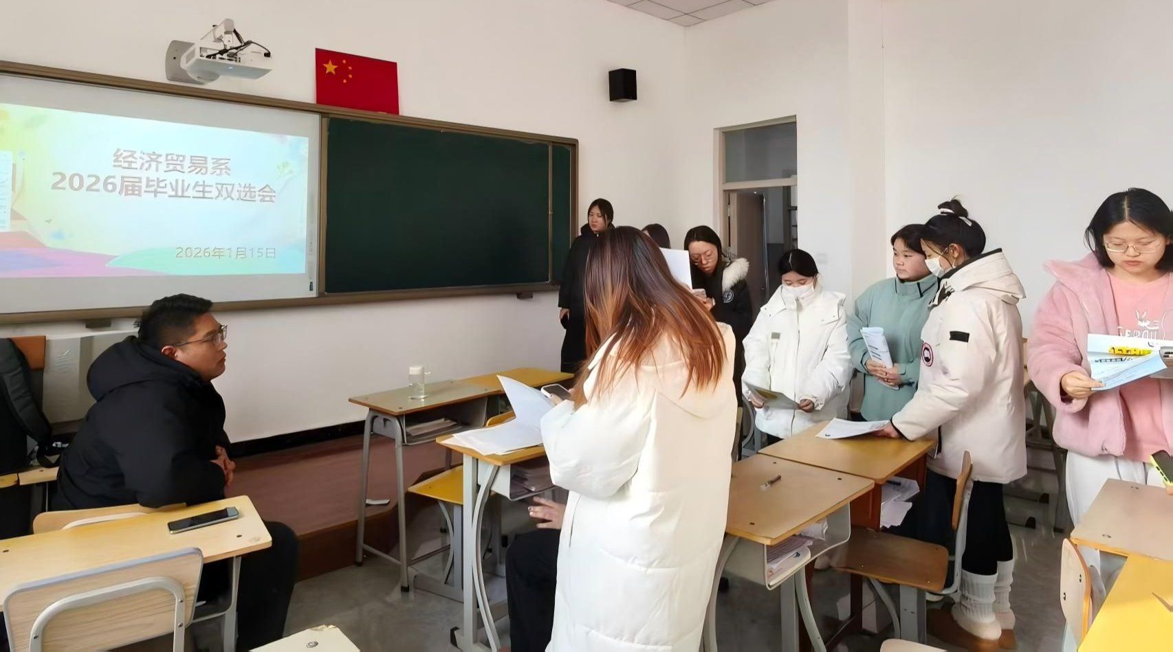 1月15日下午,经济贸易系在知新5号楼举办2026届毕业生双选会,本次双选会由学院招生就业指导中心和经济贸易系共同举办,邀请省内外13家企业参加,为电子商务、市场营销、跨境电子商务以及现代物流管理专业提供300余个实习就业岗位。