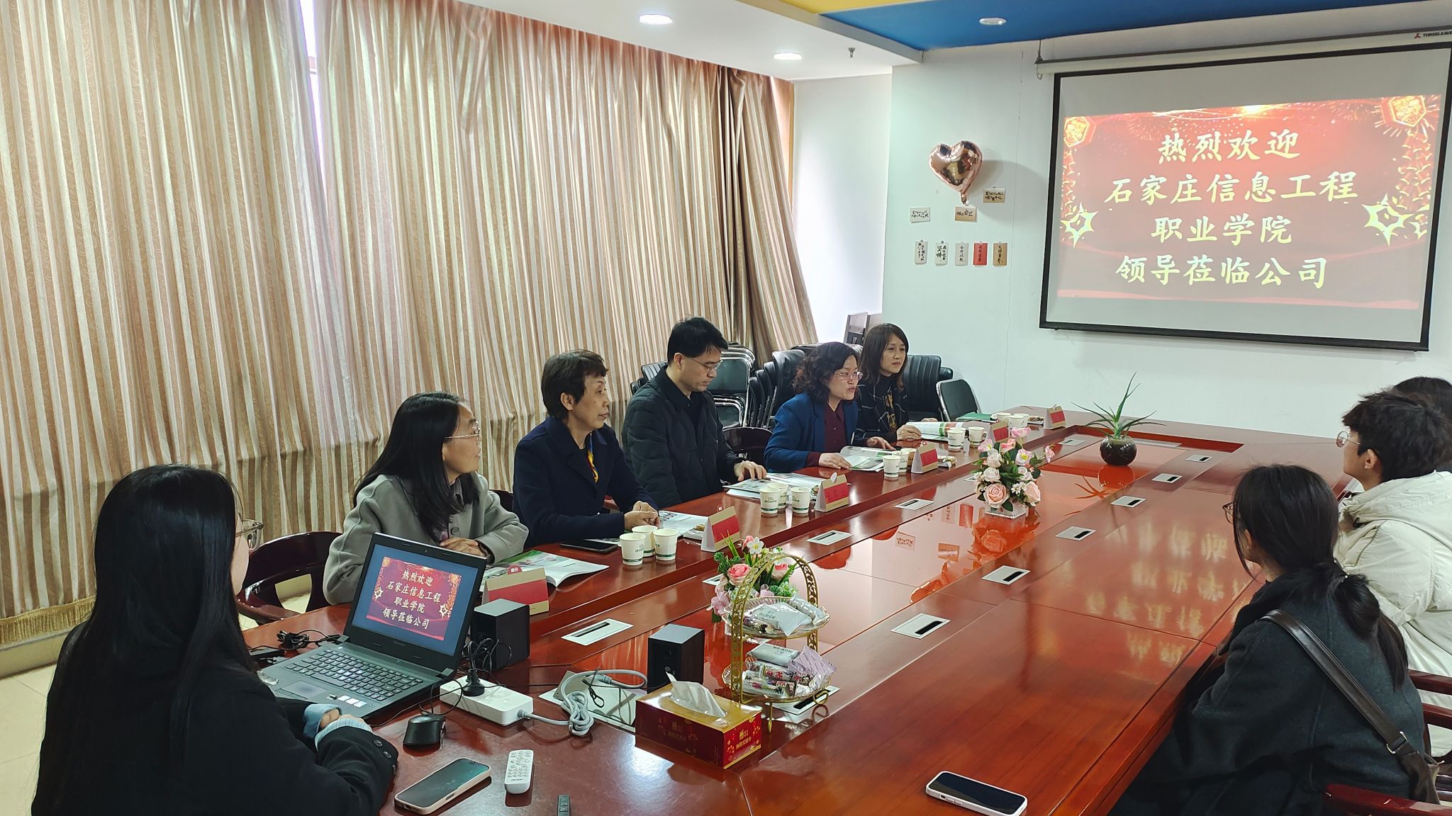 在石家庄盛世康禾科技有限公司,院领导与企业管理人员及部分在职毕业生、实习学生进行了座谈,听取了企业对学院人才培养的意见建议,并细致询问了毕业生的工作发展情况。院领导与同学们亲切交流,咨询同学们工作情况、薪资待遇、日常生活等,并表示学院将会是每一位学生坚实的后盾。