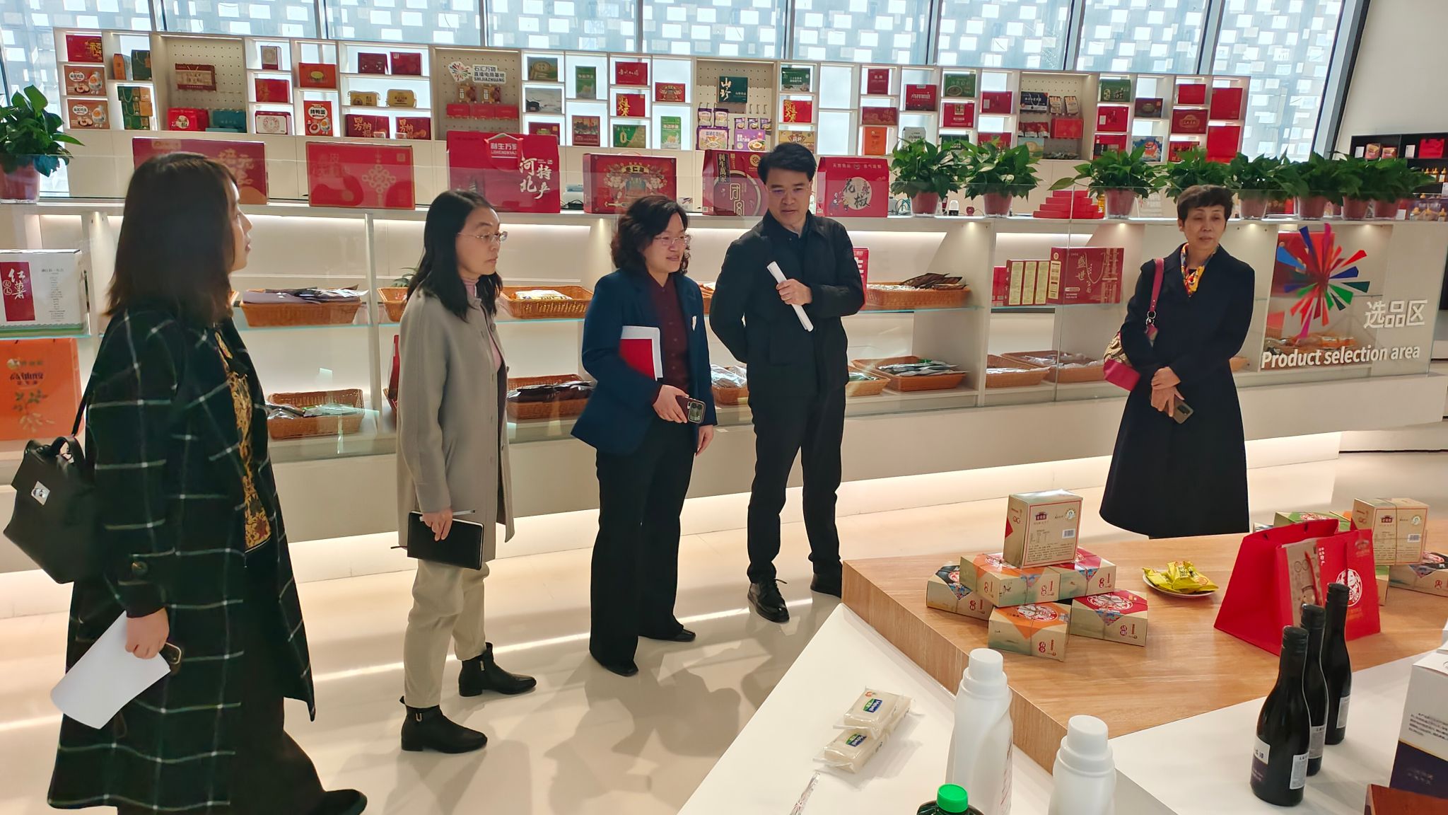 在石汇万物直播电商基地,院领导一行实地参观了直播电商基地,详细了解了企业的发展历程。双方就校企人才培养、共建实习实训基地等议题进行深入探讨,校企双方均表达了进一步加强合作的强烈意愿,并在联合开展技术攻关、拓宽毕业生招聘渠道等方面初步达成了共识。