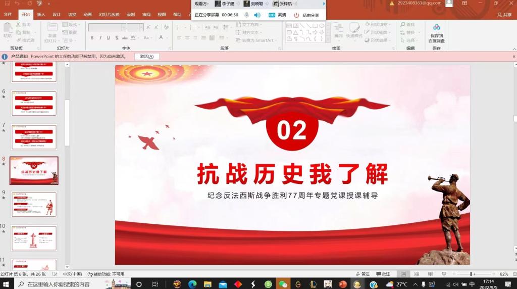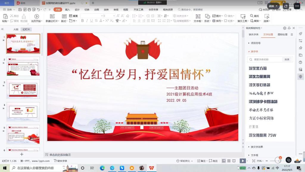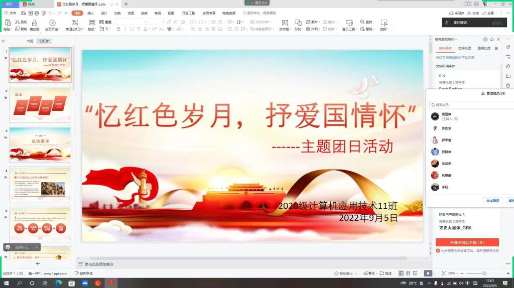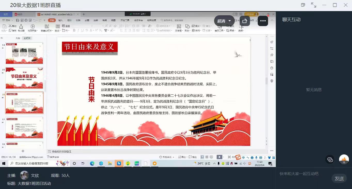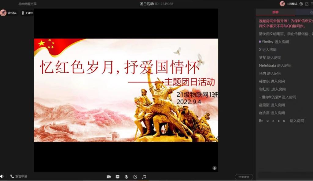 由于疫情原因,9月5日,计算机应用系各团支部通过钉钉、QQ、腾讯会议等线上渠道开展“忆红色岁月,抒爱国情怀”主题活动。