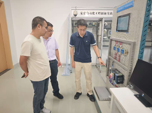 参观交流期间,教师一行首先前往研华科技与北京信息科技大学联合共建的自动化工程配套实训室,实地考察工业大数据采集终端设备、大数据综合分析运算平台、半实物仿真实验系统及自动化模拟产线的运行流程。