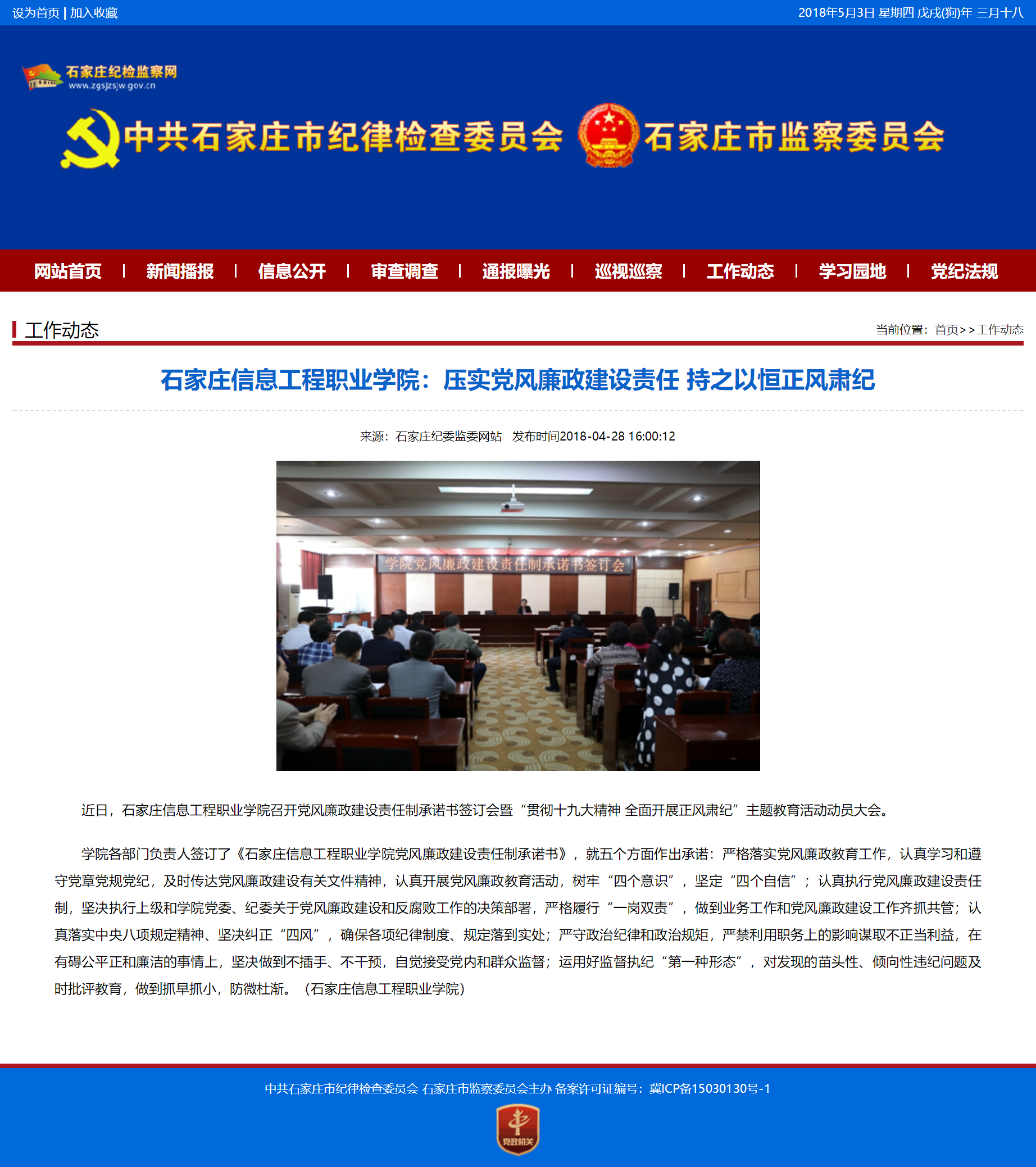 石家庄信息工程职业学院 纪律检查委员会主办