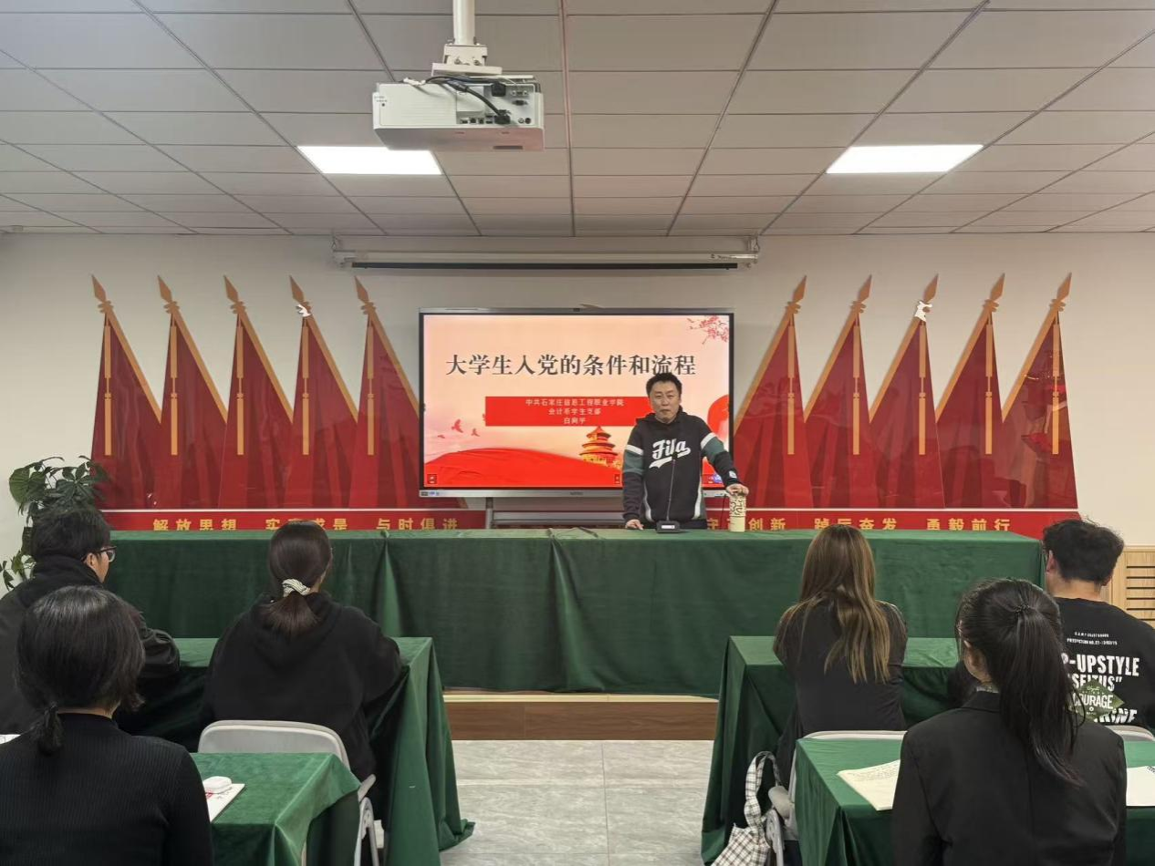11月3日,会计系学生党支部书记白向宇开展“大学生入党的条件和流程”主题讲解,为有入党意愿的学生厘清标准、指引方向,夯实思想根基、凝聚奋进力量。