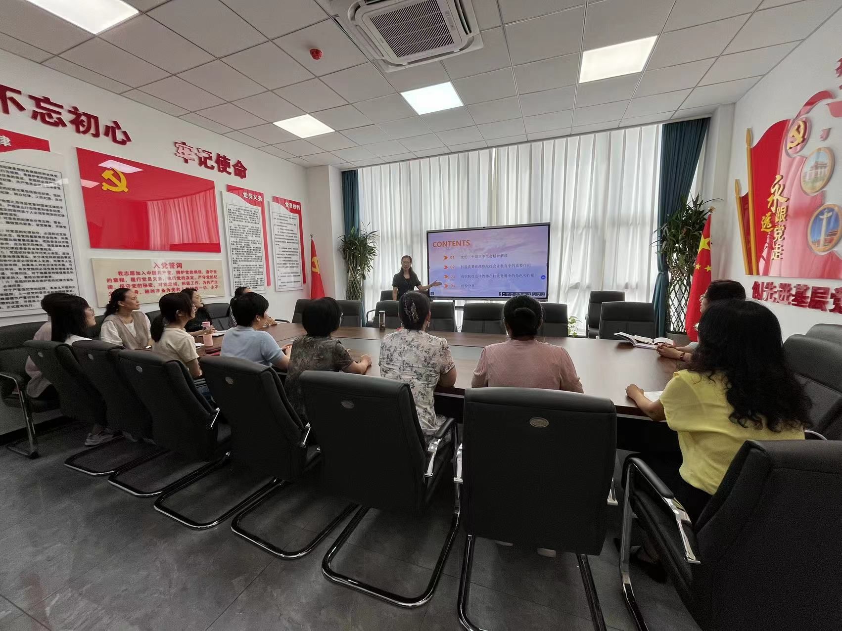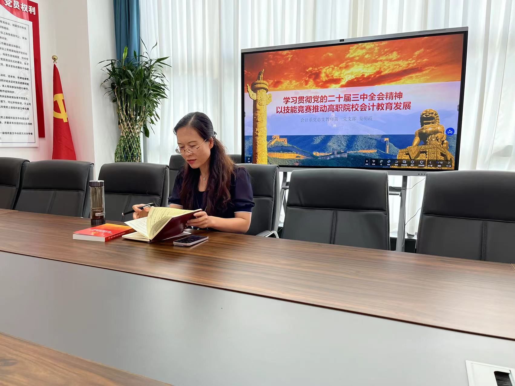 9月5日,会计系教师第一党支部书记姜明霞组织支部全体党员上党课,深入贯彻学习党的的二十届三中全会精神,探讨“技能竞赛推动高职院校会计教育全面发展这一重要议题,旨在进一步凝聚共识,明确方向。