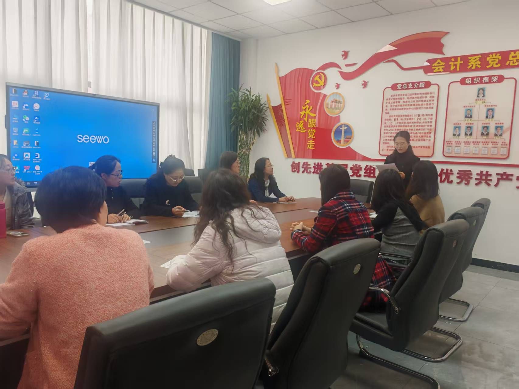 会计系教师第一党支部全体党员深入学习全会公报原文,深刻领会 “十五五” 时期的重大意义、主要目标和重点任务。大家一致认为,全会充分肯定了党的二十届三中全会以来中央政治局的工作,高度评价了 “十四五” 时期我国发展取得的重大成就,令人备受鼓舞、倍感振奋。作为党员,要深刻领悟 “两个确立” 的决定性意义,增强 “四个意识”、坚定 “四个自信”、做到 “两个维护”,把思想和行动统一到全会决策部署上来。