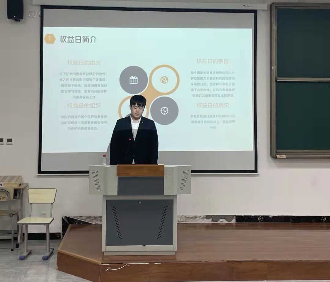 为了共同营造安全、和谐、有序的消费环境,切实保障消费者的合法权益。会计系于3月15日在知新2-4号楼连廊210教室开展“315消费者权益日”主题讲座。