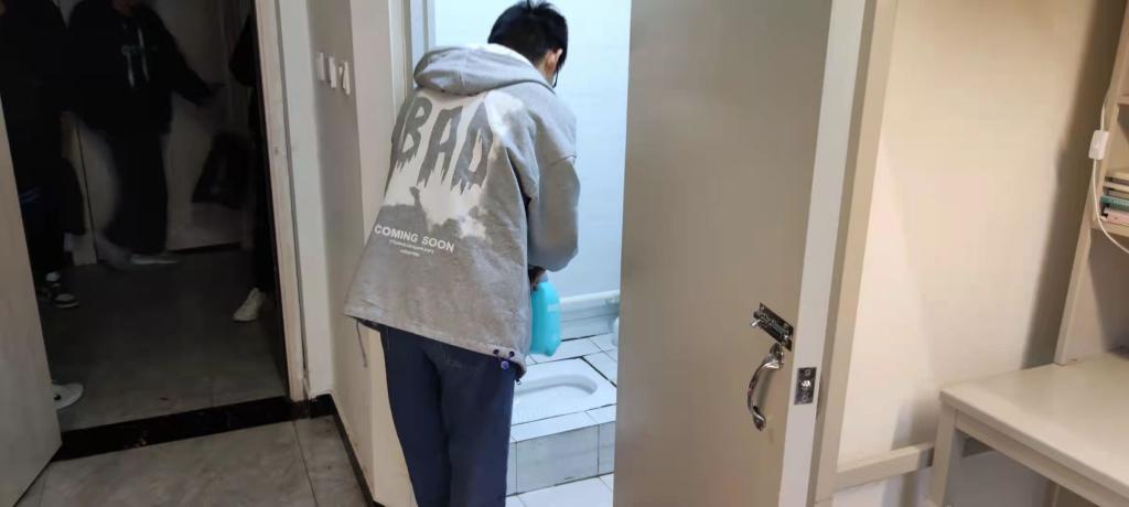 随后,志愿者对各宿舍卫生间、洗漱台、地面等区域进行全面喷洒,对每个角落都进行规范消毒,做到各个区域全面覆盖,有效遏制了宿舍内外病毒细菌的滋生。同时,志愿者们还不断提醒同学们注意宿舍卫生的打扫,及时倒垃圾,加强室内通风,保持疫情期间心情舒畅。