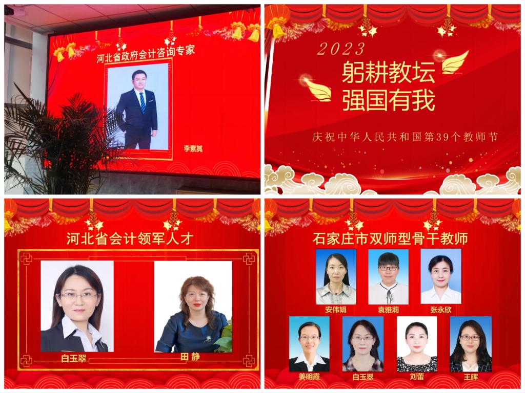 9月份,以庆祝第39个教师节为契机,全面宣传展示了会计系河北省会计领军人才、河北省政府会计咨询专家、河北省先进德育工作者、石家庄优秀教师、省市专业技能大赛获奖教师等优秀教师风采。充分展现优秀教师们爱岗敬业、踔厉奋发、严谨笃学、潜心育人的精神风貌,他们始终牢记为党育人、为国育才的初心使命,不断提升教育教学质量,共同努力为教育事业谱写新的华章。