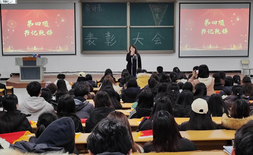 1月8日,会计系在知新2号楼110教室召开了优秀宿舍表彰大会,对本学期优秀宿舍和优秀班集体予以表彰。会计系党总支书记田静及全体辅导员老师出席了本次大会。