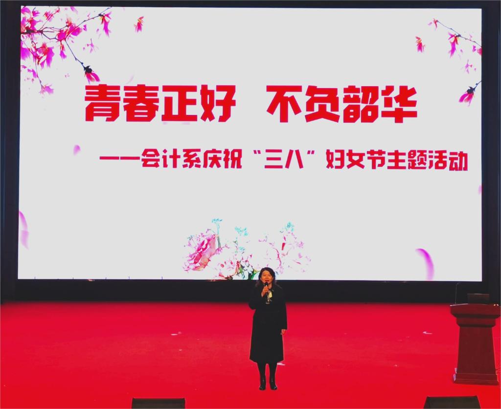 最后,田静书记代表会计系向全体女同学表达了节日的祝福和问候,祝大家“三八”妇女节快乐,勉励全体女同学,要珍爱自己的身份,珍重自己的健康、珍惜青春年华,不负韶华,绽放青春的色彩,努力成长为更好的自己!