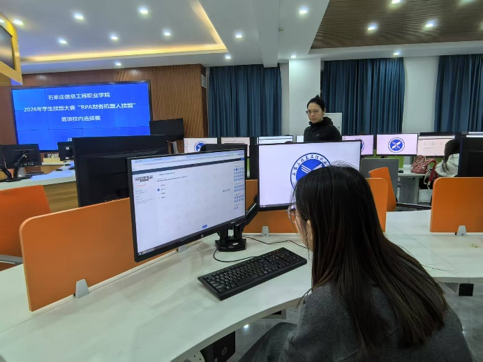 为深入贯彻落实河北省教育厅关于职业院校技能大赛的相关文件精神,严格落实《石家庄信息工程职业学院学生技能大赛校赛方案》(石信院教字〔2024〕1 号)通知要求,切实提升会计系学生的智能化操作能力与职业素养,同时为河北省职业院校学生技能大赛储备优秀人才,2025年12月8日17:30至18:30,2026年河北省职业院校学生技能大赛校内选拔赛(“RPA财务机器人技能”赛项)在会计系智能财务实践教学中心(知新3号楼450)成功举办。