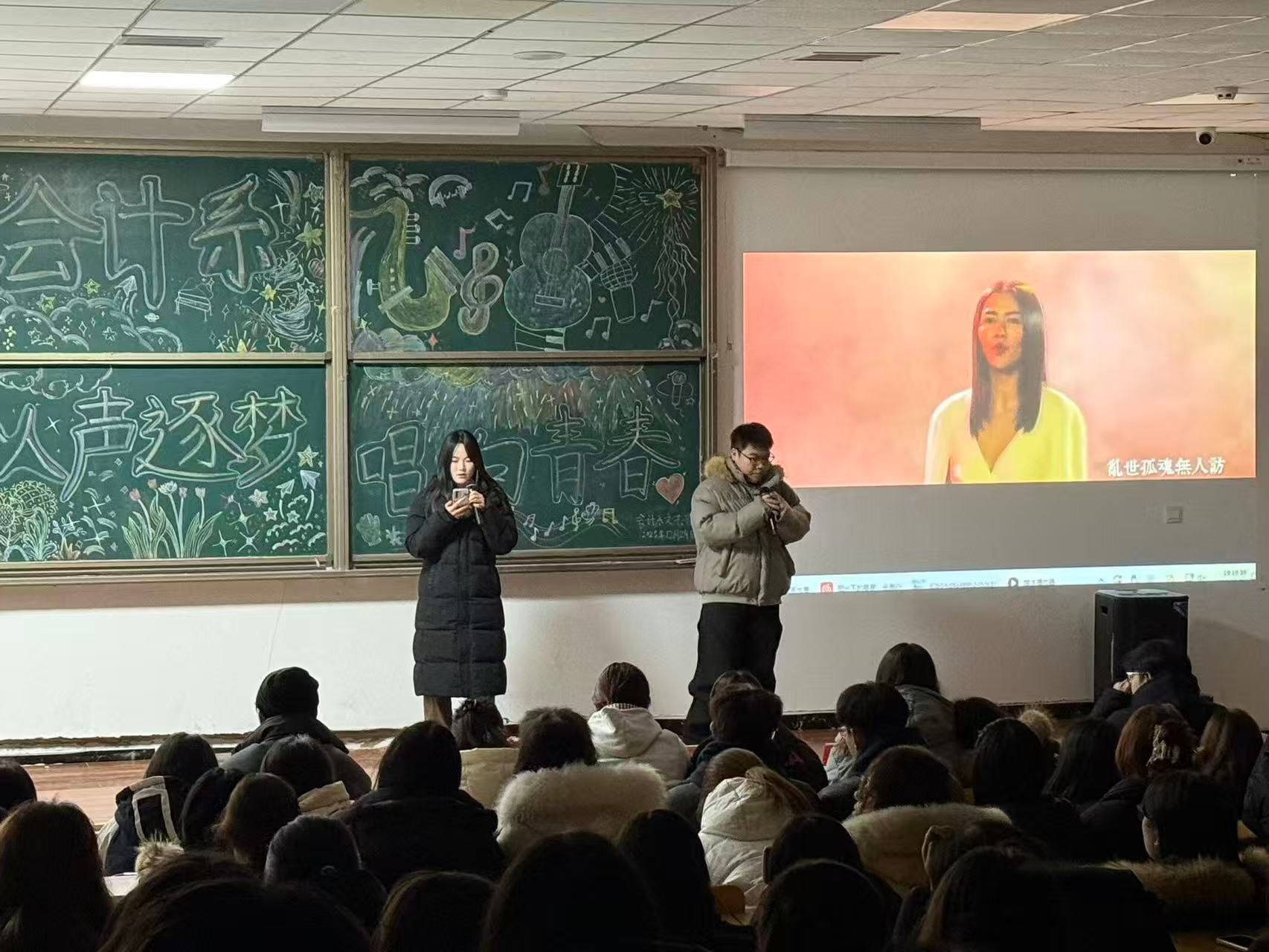 为进一步增强当代大学生的表达能力,促进校园文化繁荣发展,会计系文艺部于12月24日17:30~18:30在知新2-4连廊教室110举办了“以声逐梦,唱响青春”主题文体活动。本次活动旨在通过丰富多彩的文艺形式提升学生的文化素养和审美情趣,为热爱音乐的同学提供展示自我的舞台。