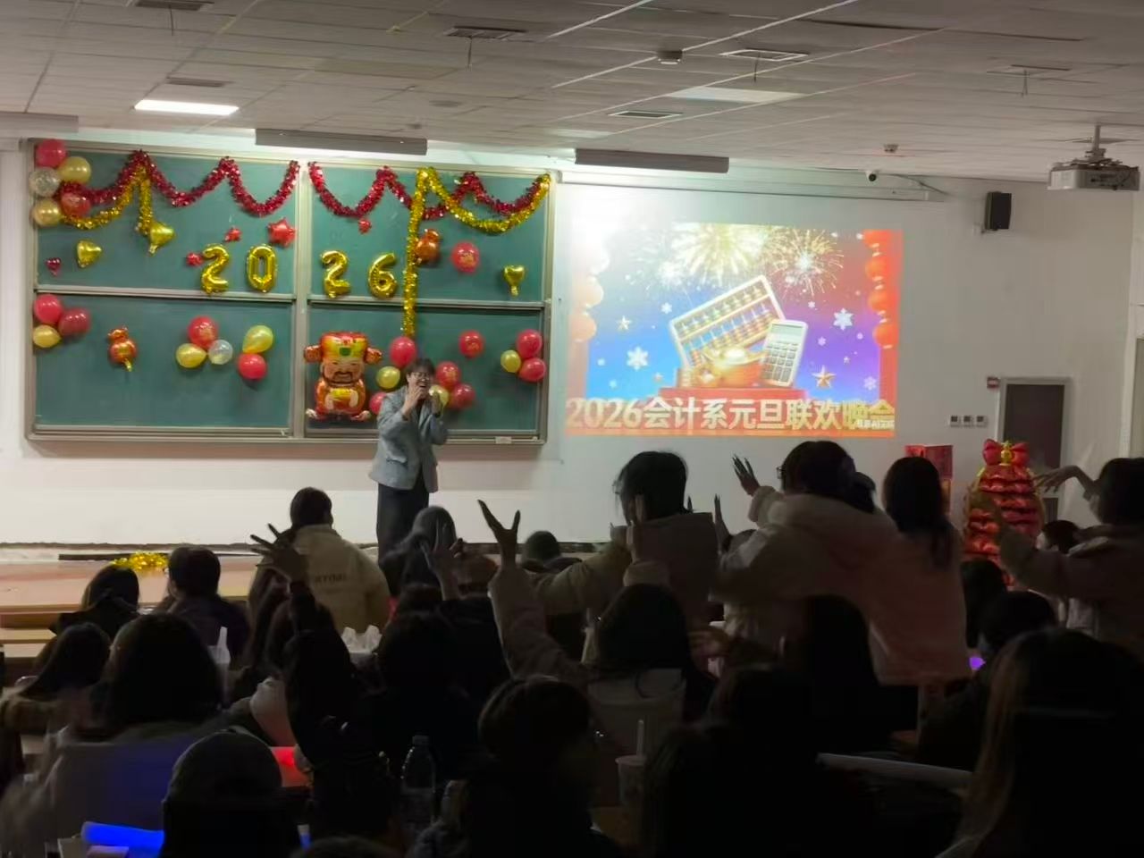 为迎接2026农历马年,传承中华优秀传统文化,凝聚师生情谊,12月29日17:30-18:30会计系于知新2-4连廊教室110开展“跃马扬鞭,精算韶华”主题文体活动。晚会为全系学子搭建起展示风采、共话未来的舞台,现场气氛热烈,欢声笑语不断。