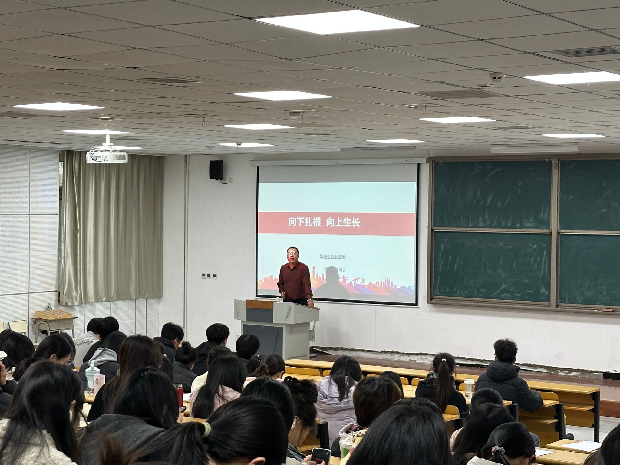 北京人寿河北分公司金磊总经理围绕行业趋势与企业优势展开分享,随后详细介绍了北京人寿的发展概况,并重点推介“事务所”项目及专属就业支持,以及从“保险代理”到“服务供应”的职业发展路径,为学子们清晰勾勒职业前景。