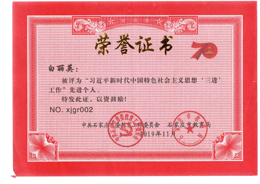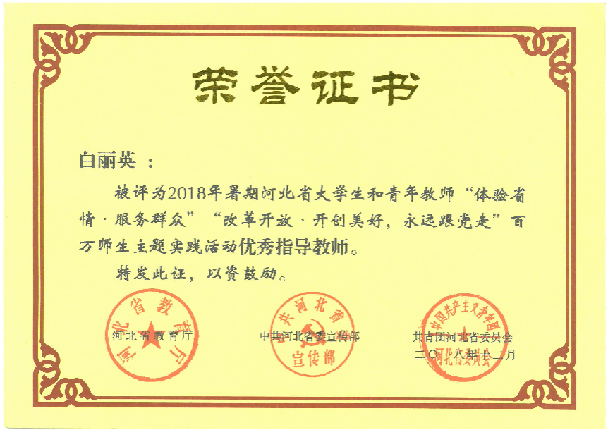 长期坚守辅导员一线岗位,注重以学生成长成才为中心,将思想政治教育与日常管理、就业指导深度融合。在学生理想信念教育、学风建设、心理健康教育和职业生涯规划等方面积累了丰富经验,形成了“严在日常、爱在细节、重在引导”的工作风格,深受学生信赖与喜爱。曾荣获河北省高校辅导员年度人物提名奖,入选河北省高校辅导员骨干辅导员人才库,获评河北省先进德育工作者、河北省高校辅导员暑期“大家访”活动先进个人、河北省主题实践活动优秀指导教师、石家庄市高校思想政治先进工作者、石家庄市高校优秀辅导员、学院第三届“最美教师”等多项荣誉。