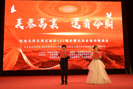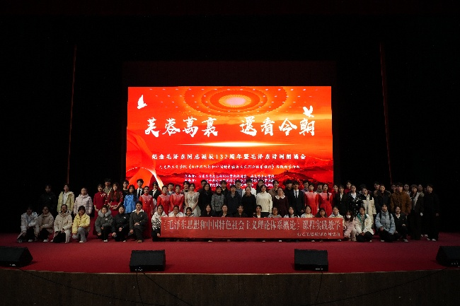 为深入贯彻落实党的二十届四中全会精神,推动我校思政课高质量发展,在毛泽东同志诞辰132周年之际,12月16日,马克思主义学院在昭德礼堂隆重举办“芙蓉万里 还看今朝”纪念毛泽东同志诞辰132周年暨毛泽东诗词朗诵会。