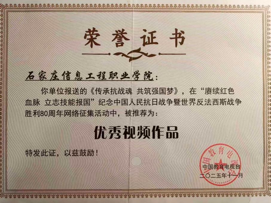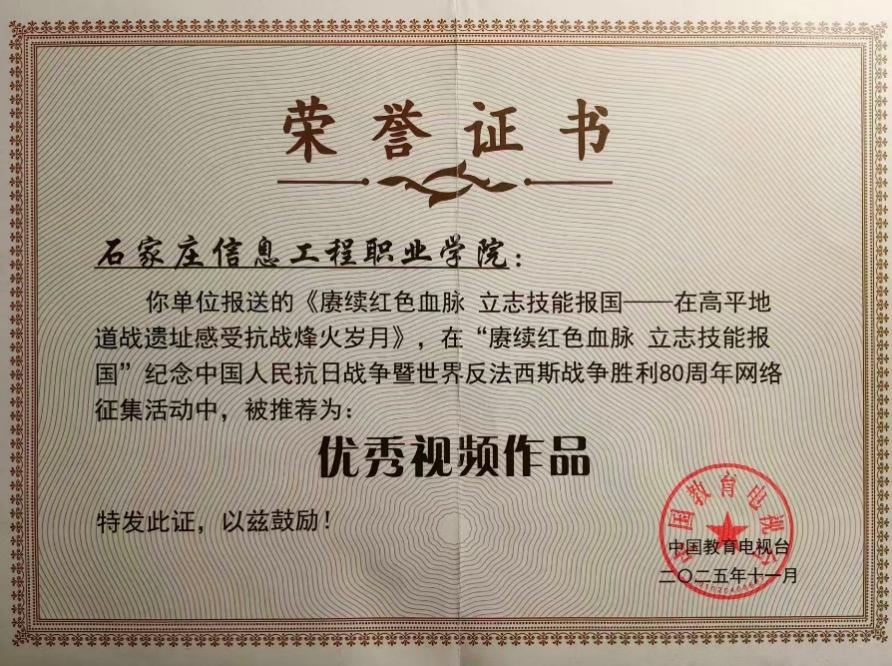 近日,由教育部办公厅部署、中国教育电视台主办的“赓续红色血脉 立志技能报国”纪念中国人民抗日战争暨世界反法西斯战争胜利80周年网络征集与宣传展示系列活动评选结果揭晓。我院选送的《传承抗战魂 共筑强国梦》《在高平地道战遗址感受抗战烽火岁月》两部作品脱颖而出,全部入选优秀视频作品名单,展现了在红色文化育人、实践教学与艺术教育方面的扎实成效。