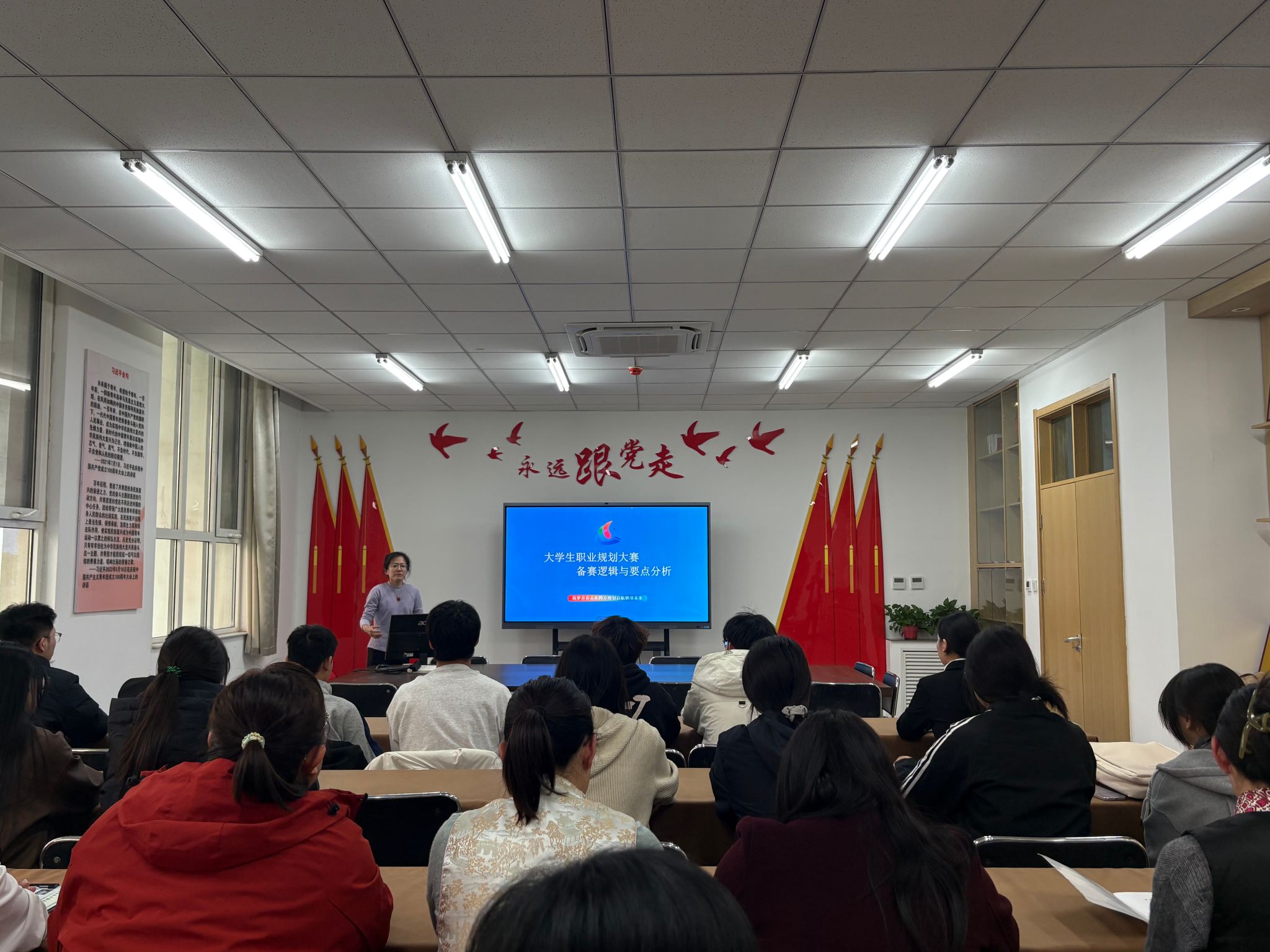 为引导学生树立正确的成才观、就业观,科学合理地规划大学学习与生活,全力备赛系赛和校赛,10月21日下午,我系在知行一号楼108党员活动室举办第三届大学生职业规划大赛系赛赛前培训会。本次培训特邀学院招生就业指导中心辛欣担任主讲,系有关负责人以及参加系赛的所有选手和指导教师参加培训。
