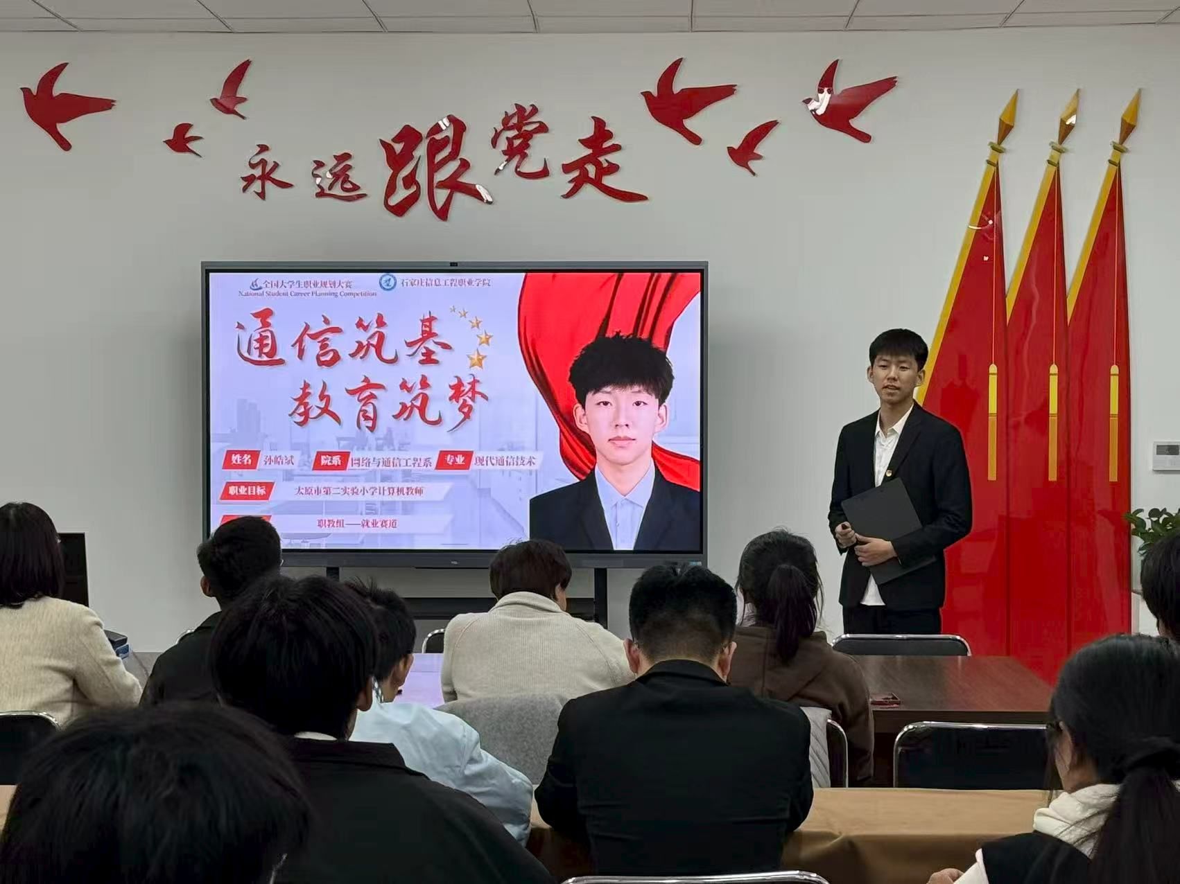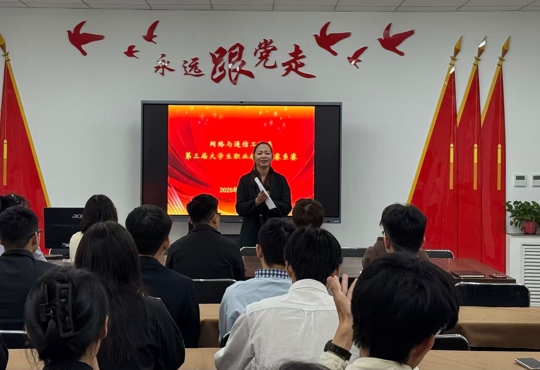 10月23日下午,网络与通信工程系在知行一号楼108党员活动室举办第三届大学生职业规划大赛系赛。