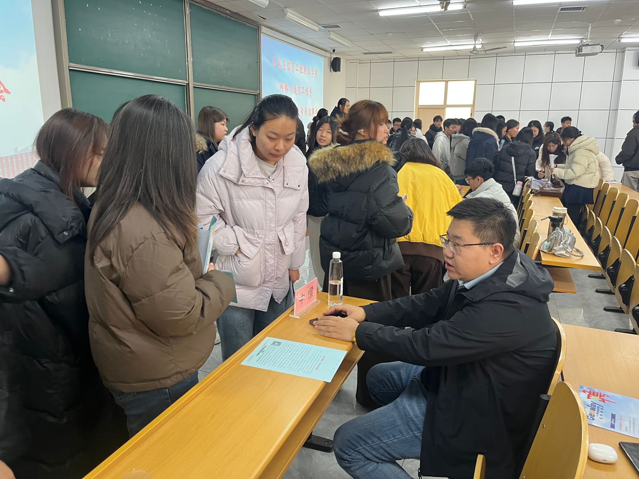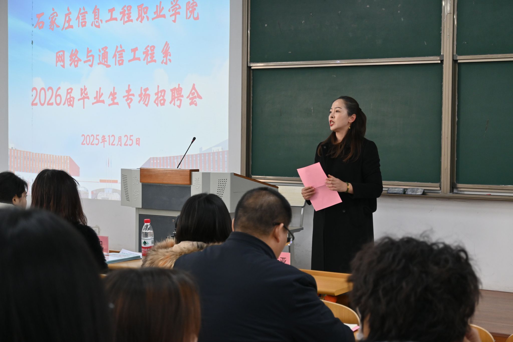 为扎实推进2026届毕业生就业工作,搭建校企精准对接平台,进一步拓宽毕业生就业渠道,2025年12月25日网络与通信工程系在知行4号楼143、249多媒体教室成功举办小型招聘会暨企业宣讲会。系书记王丽萍、主任唐磊及专任老师、辅导员和毕业生全员到场参与。
